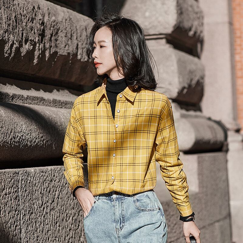 【新作】【送料無料】 Realsレトロチェック柄長袖シャツレディース2020春秋バージョンのシャツ新しいデザインセンスニッチエクステリアウェア-アリババ ロング スプリング 春物 オータム 秋物 12b219573585755