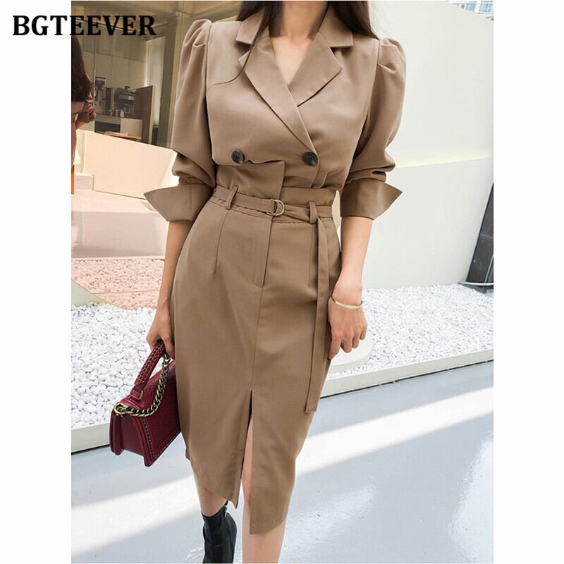 【新作】【送料無料】 BGTEEVERスタイリッシュなスカートスーツダブルブレストショートブレザー&ウエストベルトミディスカート秋2ピースセット2020 オータム 秋物 ハーネス 12b164346558015