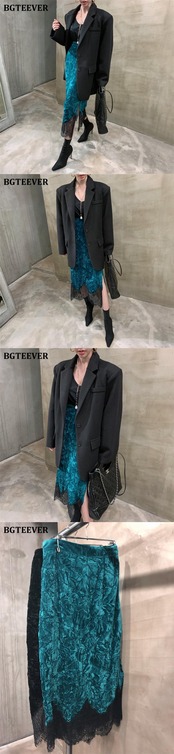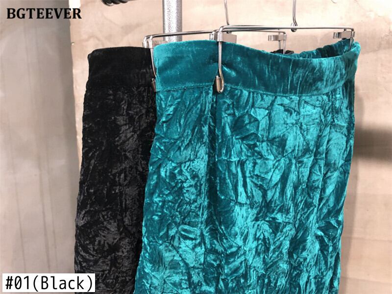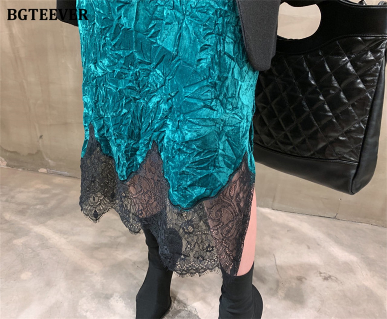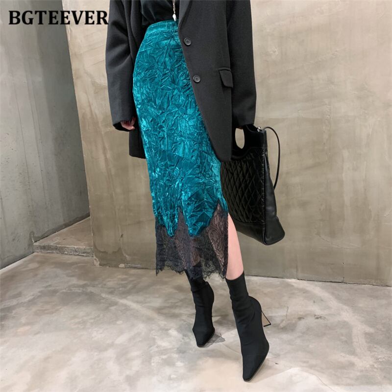 【新作】【送料無料】 BGTEEVERヴィンテージエラスティックウエストベルベットミドル丈スカートレースパッチワークレディーススプリットペンシルスカート2020秋 伸縮 オータム 秋物 ビンテージ 12b182912881415
