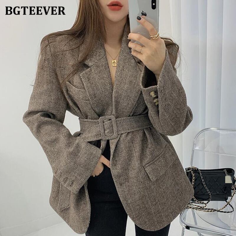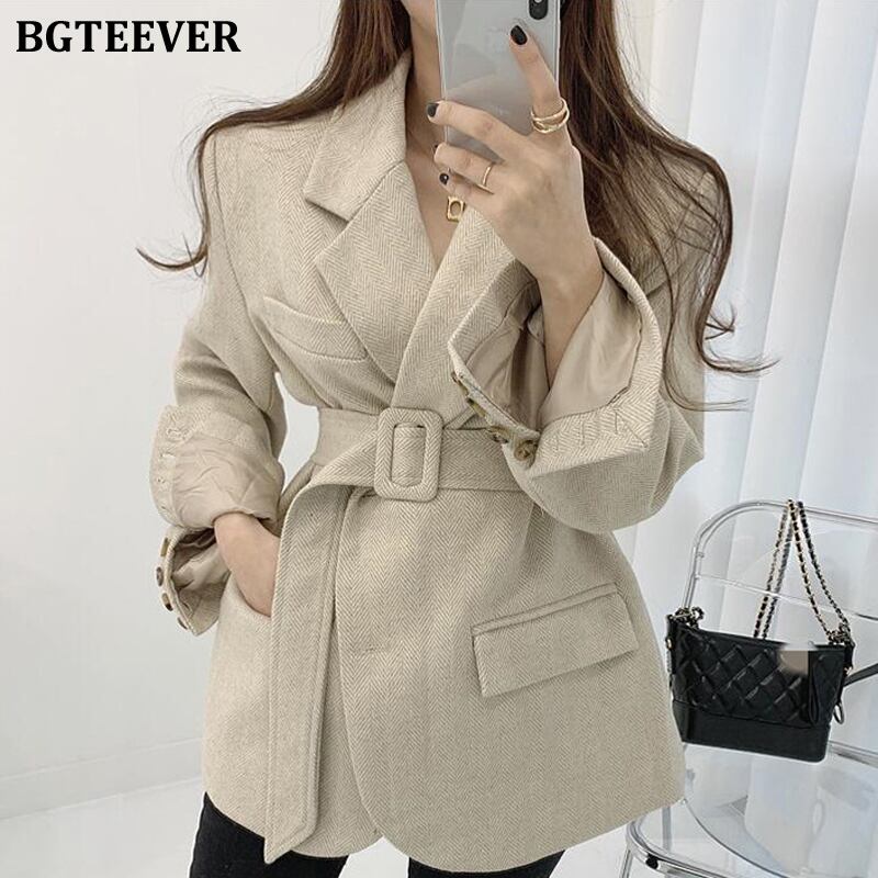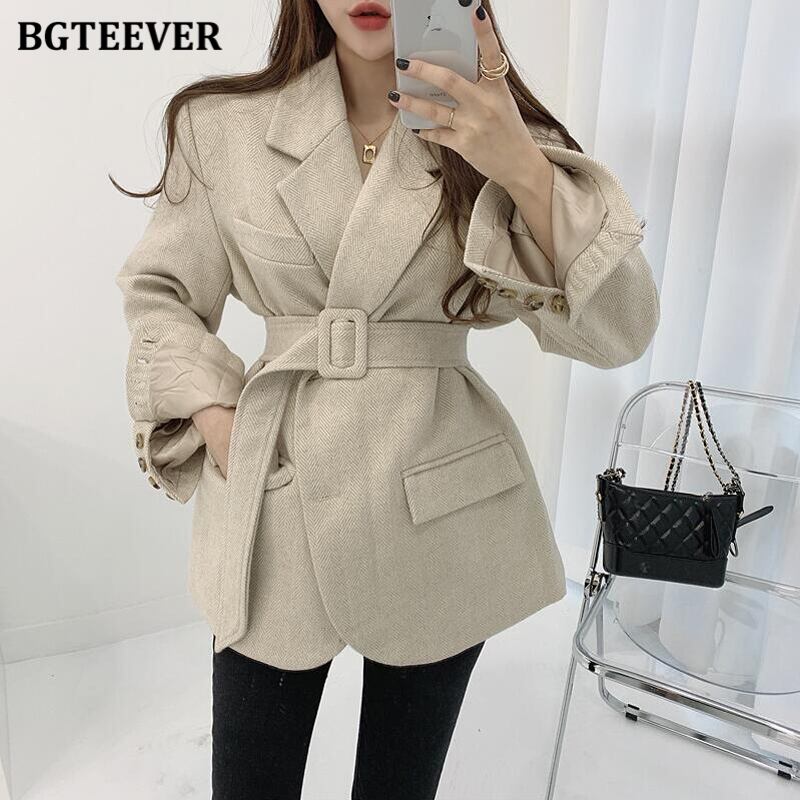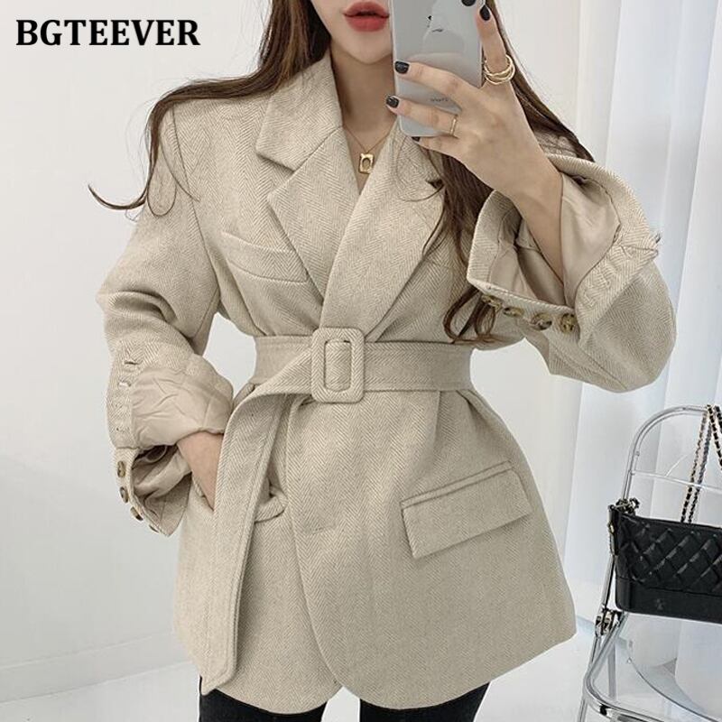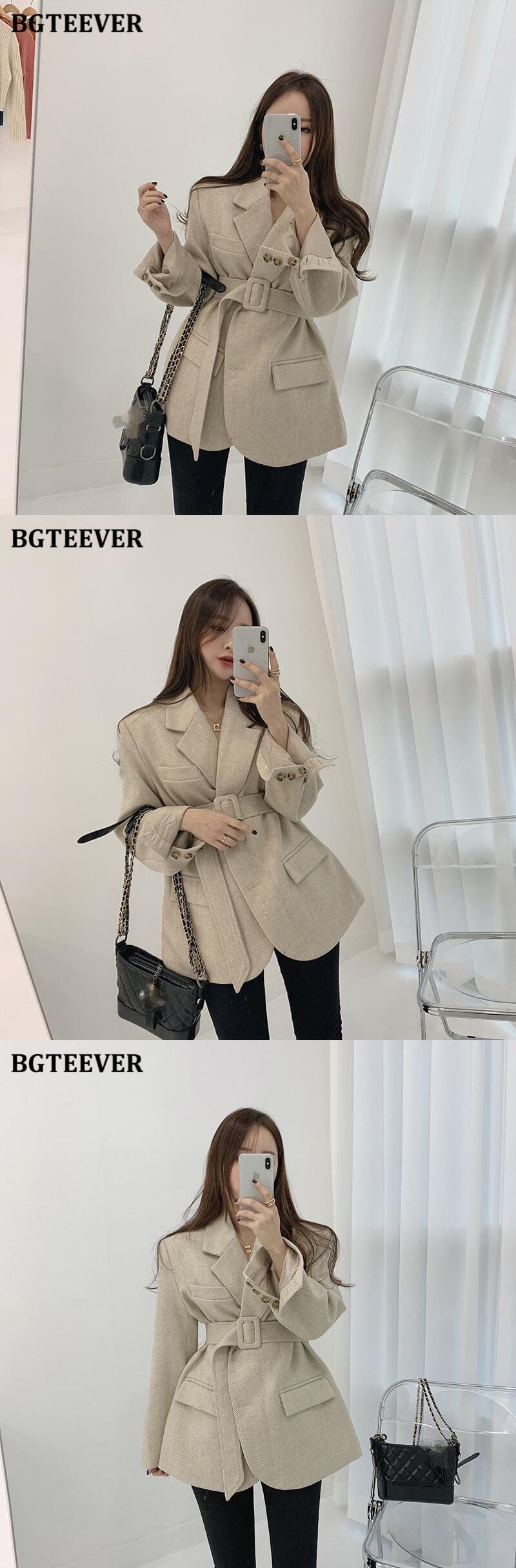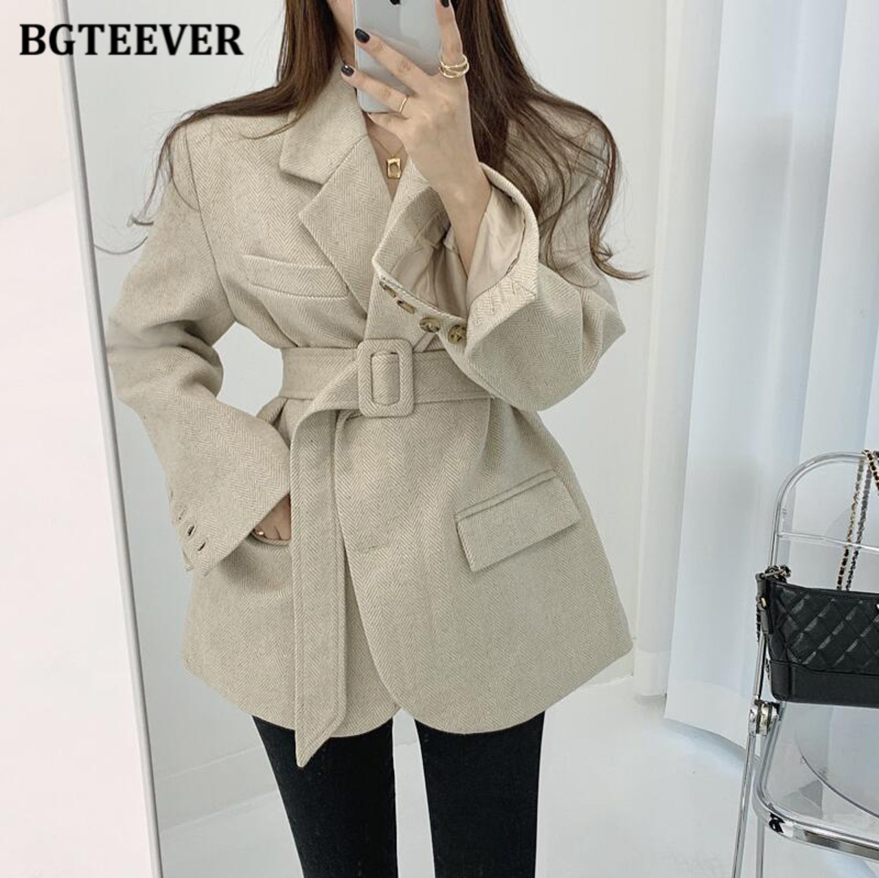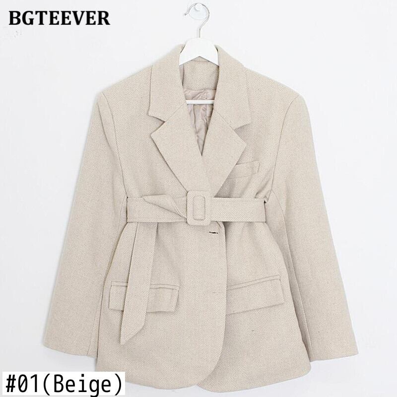 【新作】【送料無料】 BGTEEVER秋冬ウールスーツジャケット女性厚く暖かいルーズベルトシングルブレストブレイザー2020 オータム 秋物 ウィンター 冬物 ハーネス 12b133761543300