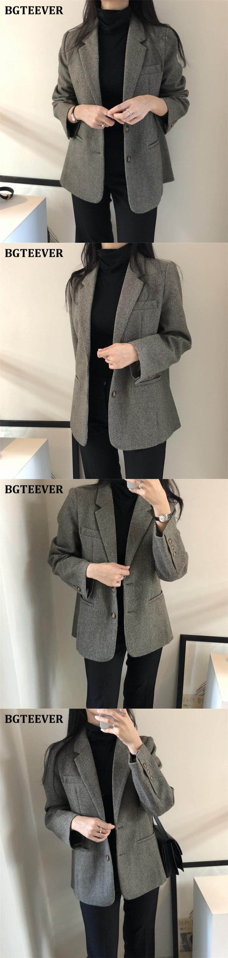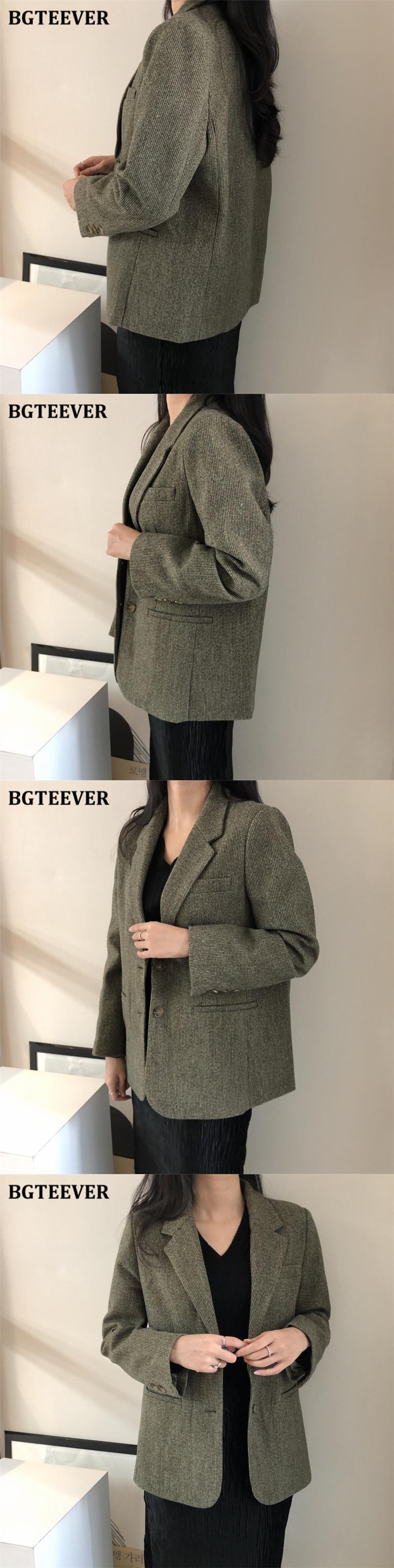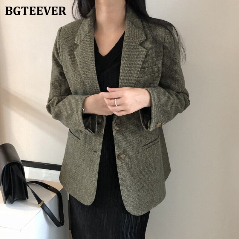 【新作】【送料無料】 BGTEEVER Vintage Thicken Women Blazer Notched Collar Pockets Slim Plaid Suit Jacket 2020 Winter Outwear ウィンター 冬物 スリム ビンテージ 12b174782350978
