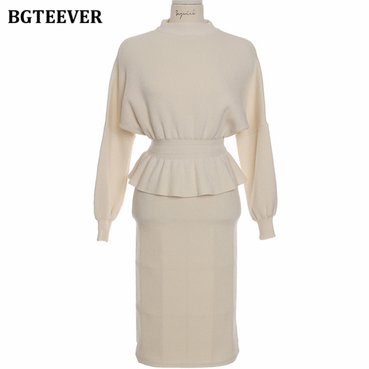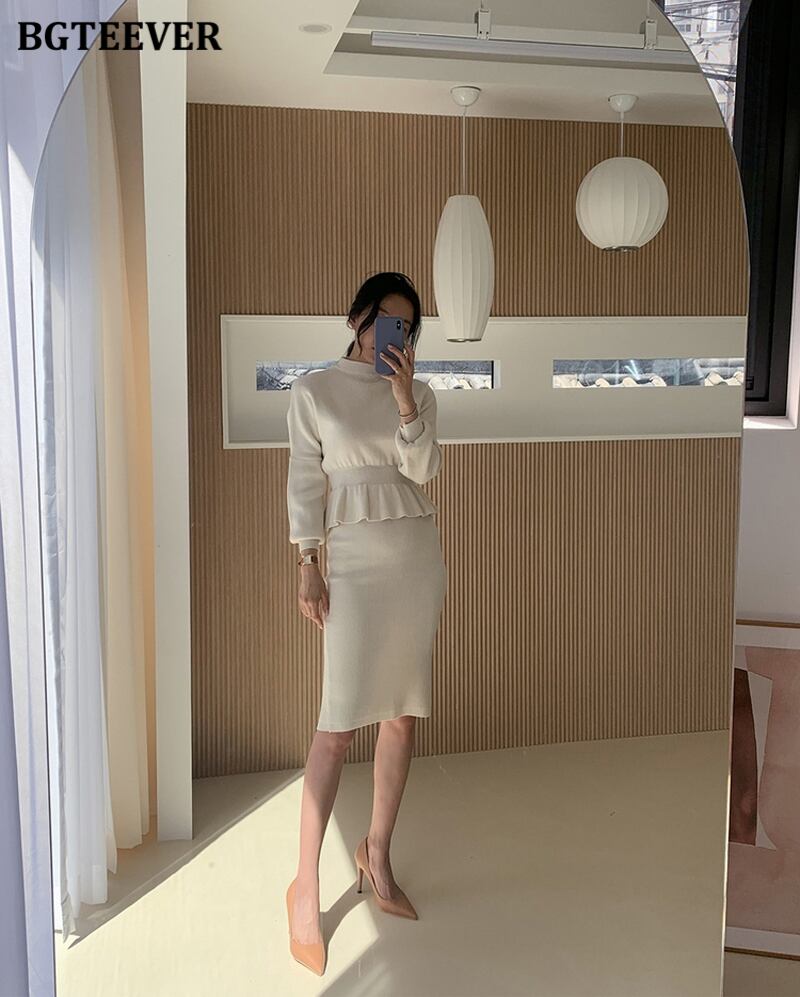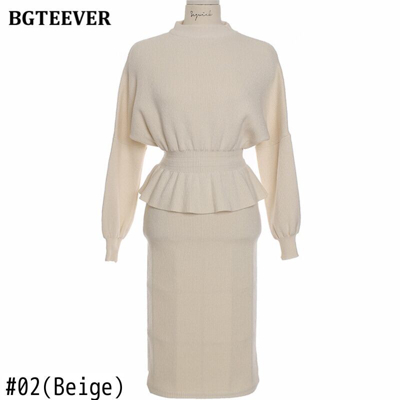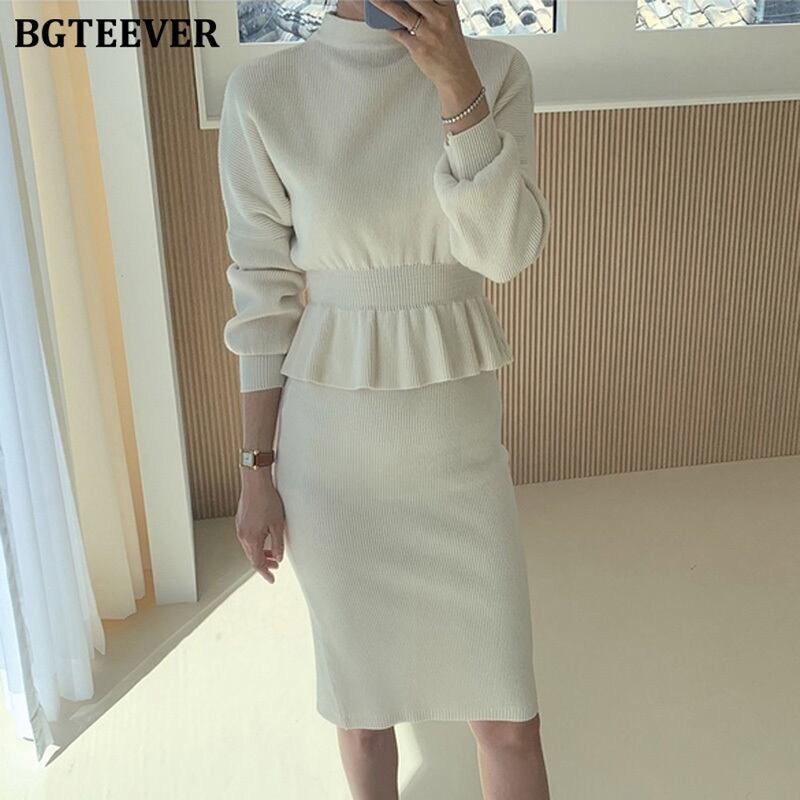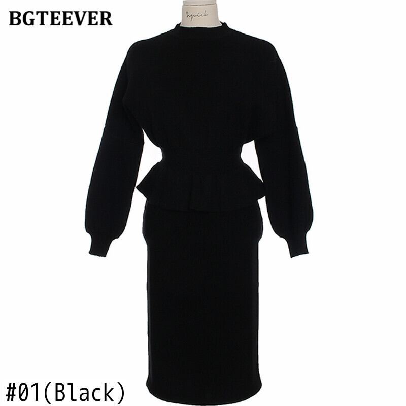 【新作】【送料無料】 BGTEEVERレディースニット2点セットOネックスリムウエストプルオーバー&ペンシルセータースカートセーターセット2020 Winter ウィンター 冬物 12b147361828955