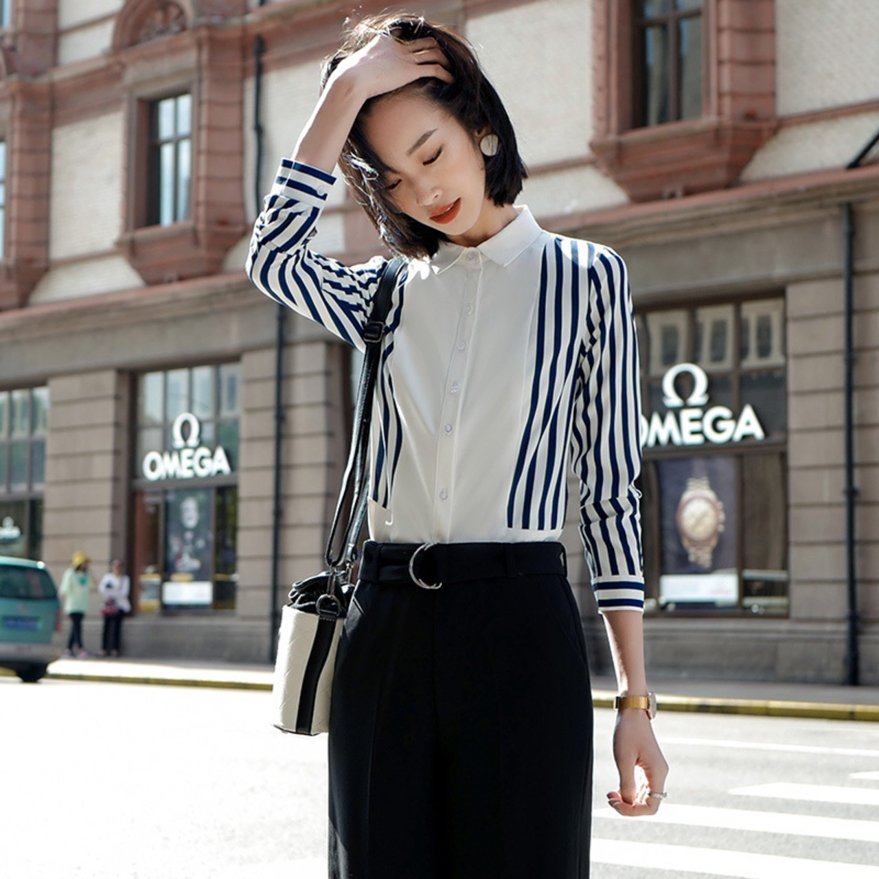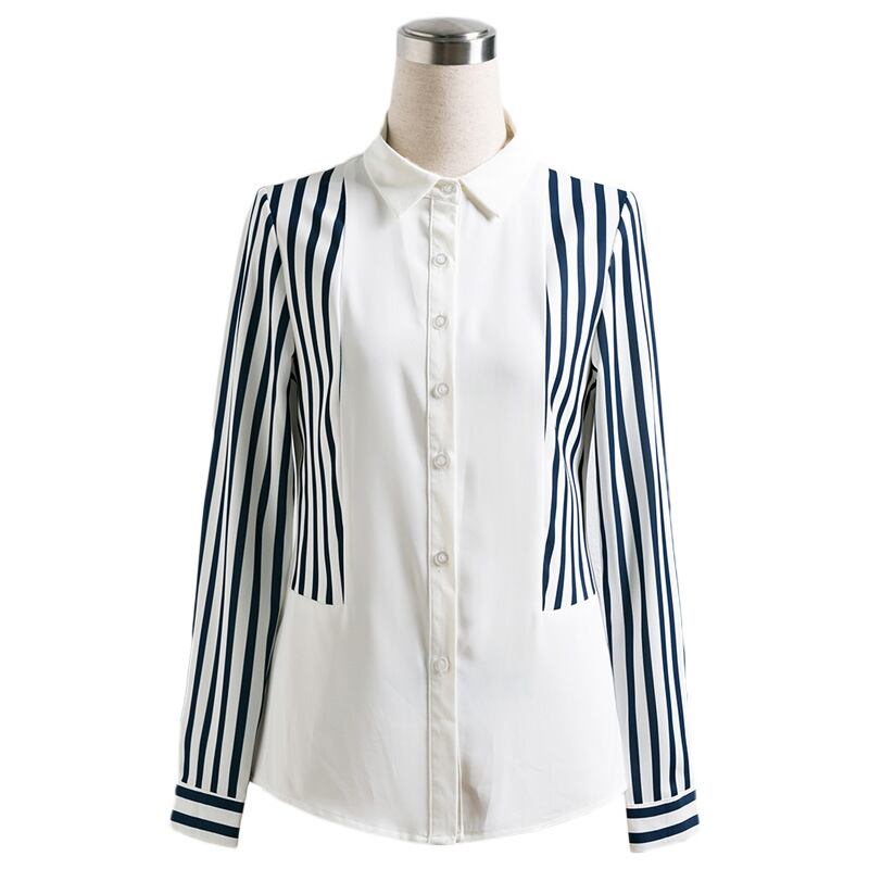 【新作】【送料無料】 リアルの個性ストライプステッチ春秋シャツレディースワイルドカジュアルプラスサイズシャツ長袖2020新作-アリババ ロング 大きめサイズ スプリング 春物 オータム 秋物 12b296911170594