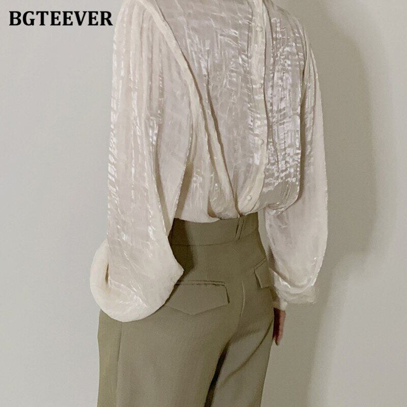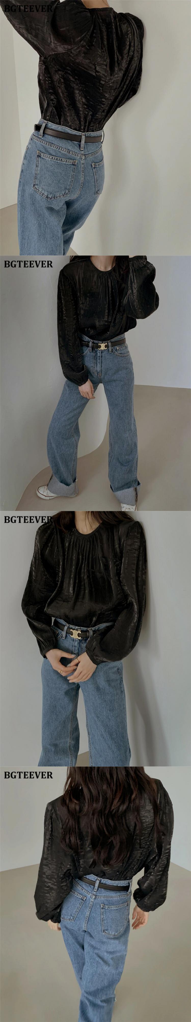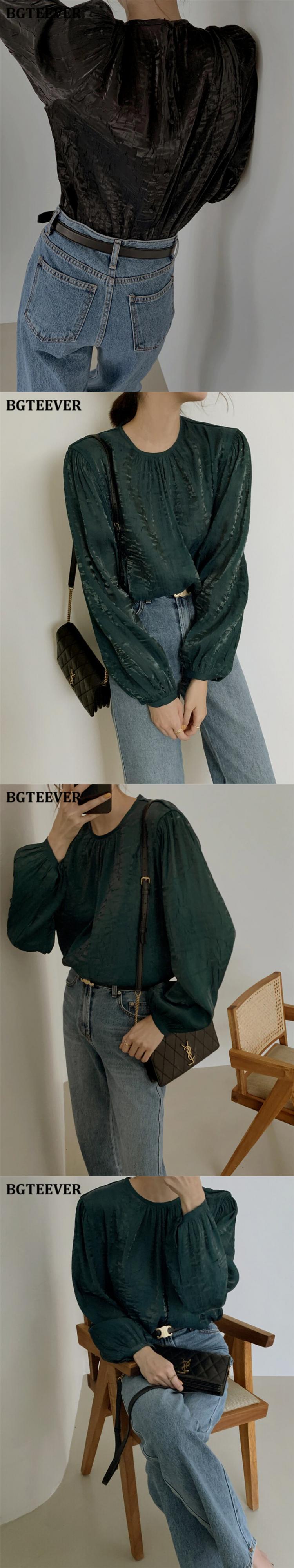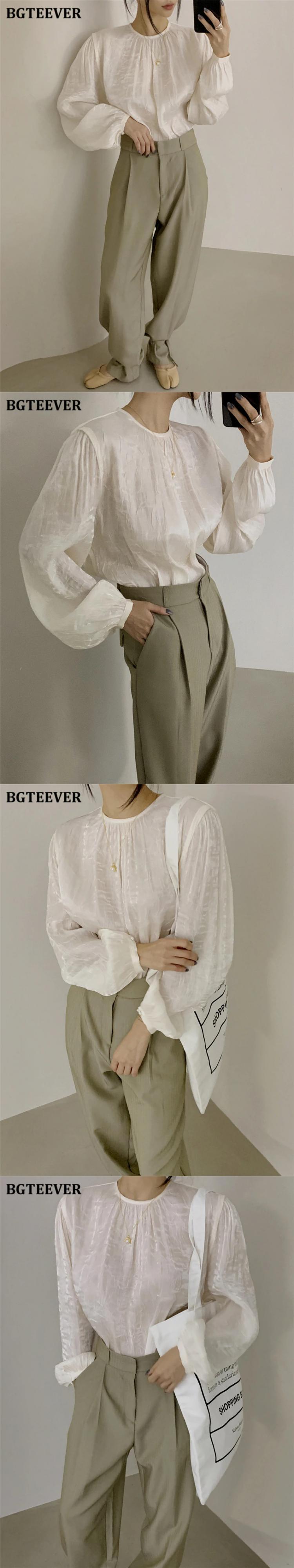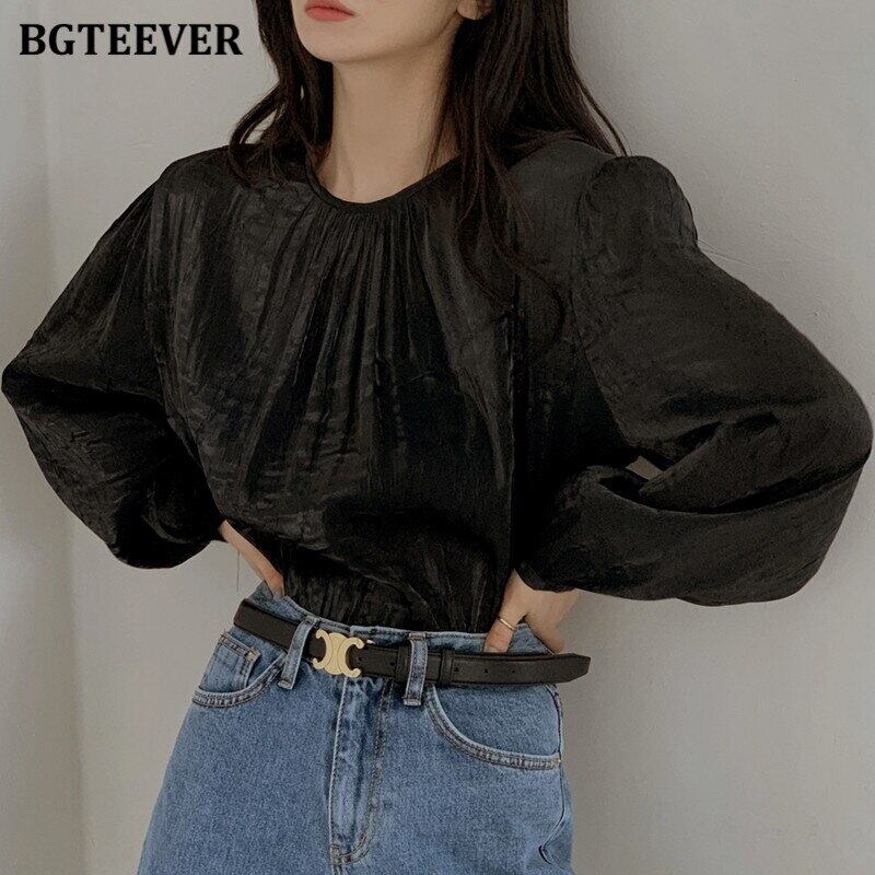 【新作】【送料無料】 BGTEEVERシックなOネックレディースシャツブラウス秋冬長袖ルーズプルオーバートップス2020ソリッドブラウス ロング オータム 秋物 ウィンター 冬物 ソリッドカラー 12b111012601884