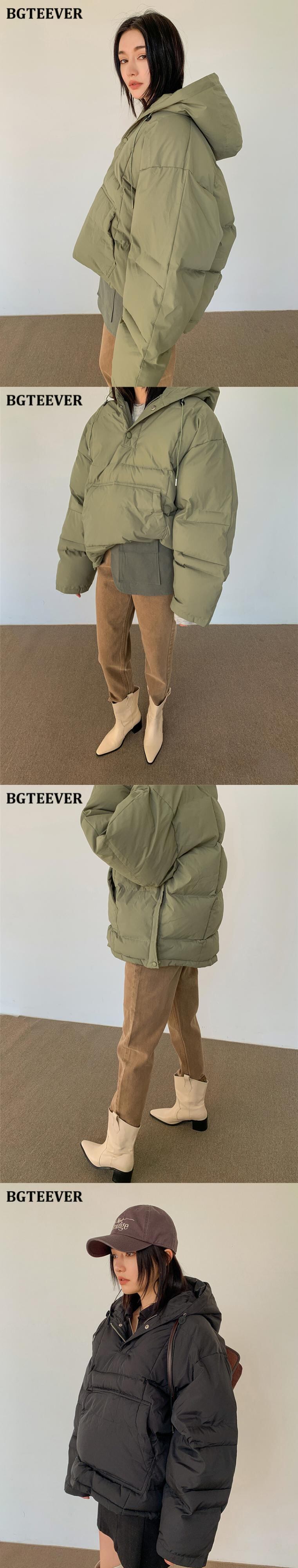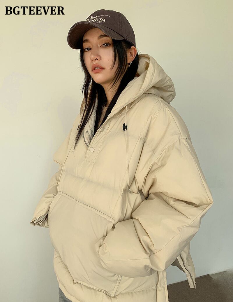 【新作】【送料無料】 BGTEEVERスタイリッシュシックフード付き暖かい女性プルオーバーパーカー2020冬厚めベルベットルーズポケットコットンパッド入りコート ウィンター 冬物 12b172881626579