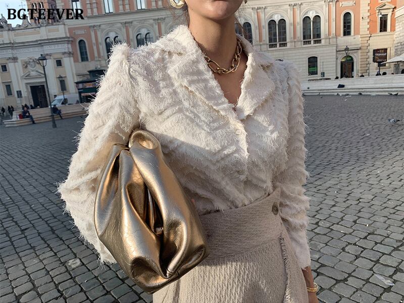 【新作】【送料無料】 BGTEEVERノッチ付きカラー女性Telsシャツブラウス2021年春シングルブレストワークウェアシャツトップス スプリング 春物 12b145828178301