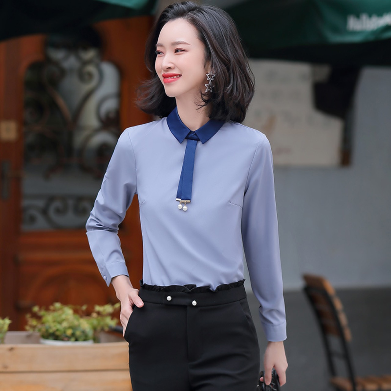 【新作】【送料無料】 本物の春秋プラスサイズ長袖シャツ女性デザインセンスニッチ2020新しいルーズアンチリンクル気質プロウェア-アリババ ロング 大きめサイズ スプリング 春物 オータム 秋物 12b218257647583