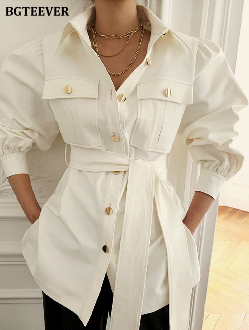 【新作】【送料無料】 BGTEEVERヴィンテージターンダウンカラーレディースジャケット長袖ベルト付きシングルブレストソリッドアウター2021春 ロング スプリング 春物 ハーネス ソリッドカラー ビンテージ 12b153150790387