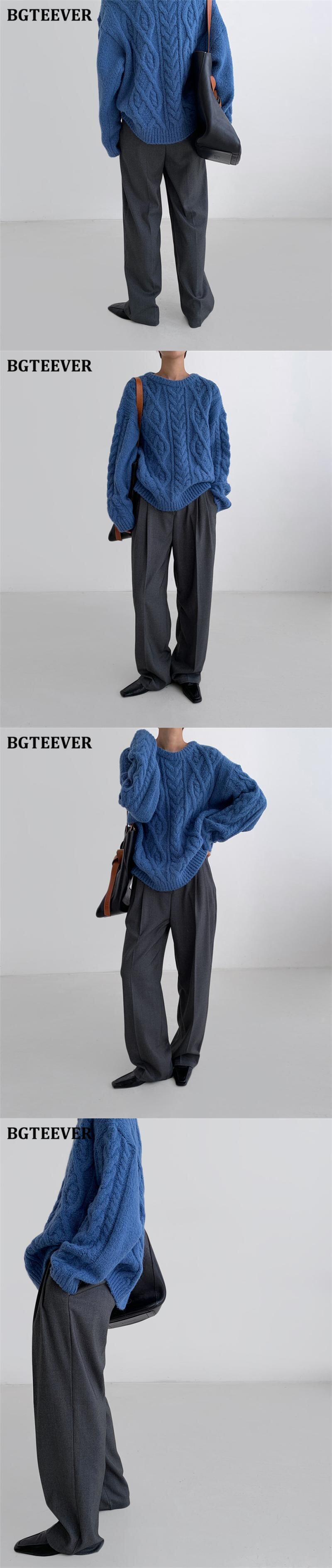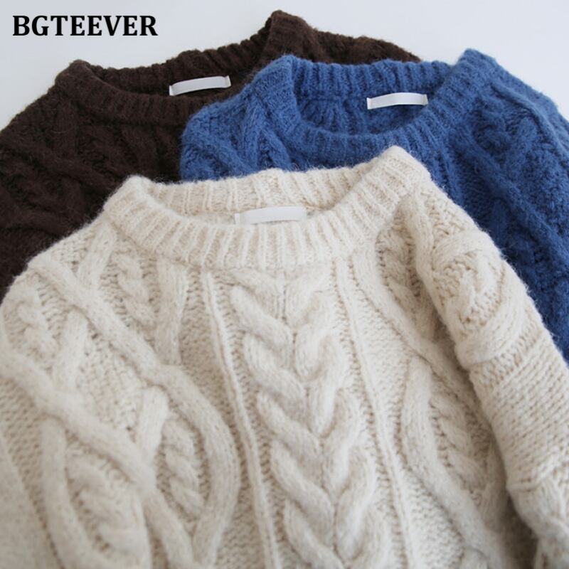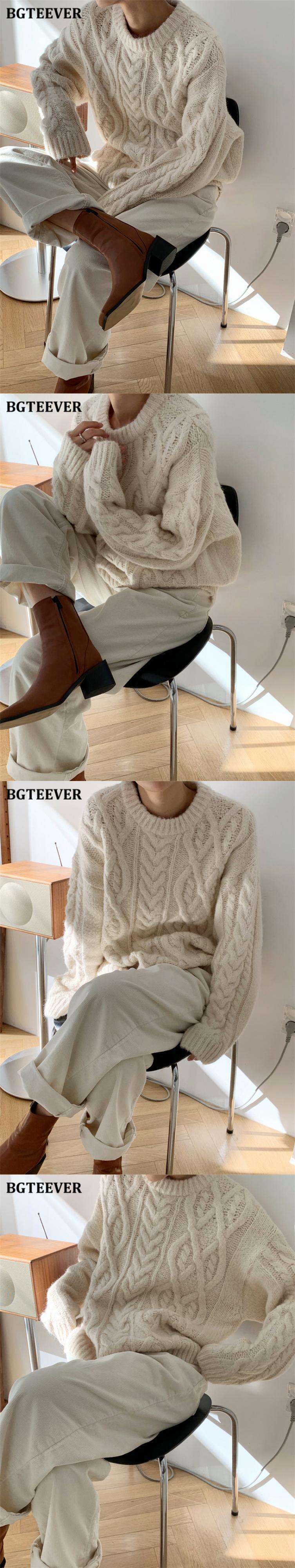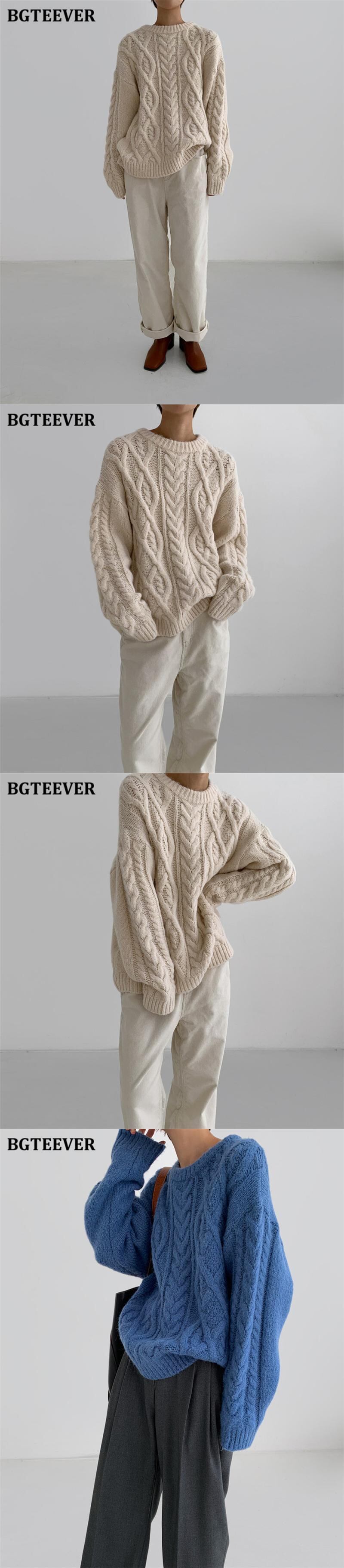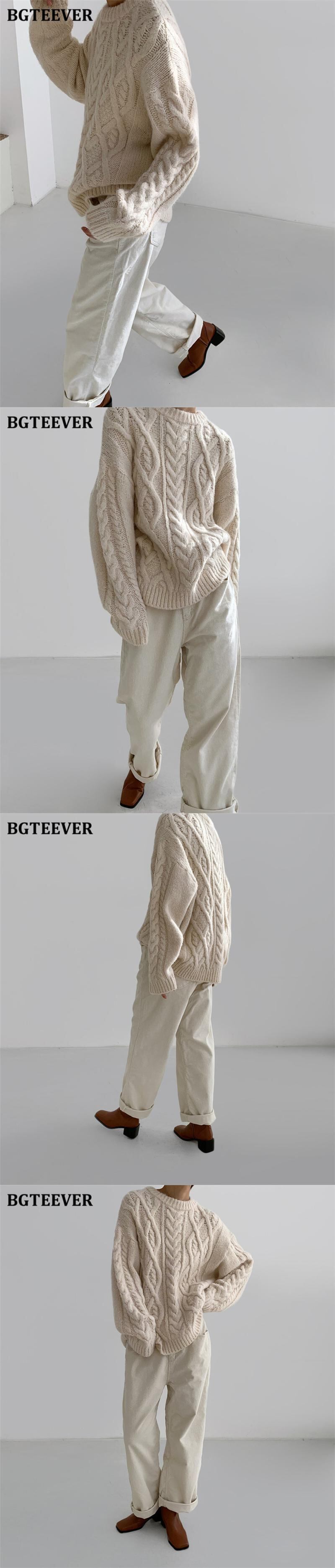 【新作】【送料無料】 BGTEEVERソフトウォーム秋冬ニットソリッドプルオーバーセーター2020Oネックルースウィミンニットツイストジャンパー オータム 秋物 ウィンター 冬物 ソリッドカラー 12b111656244500