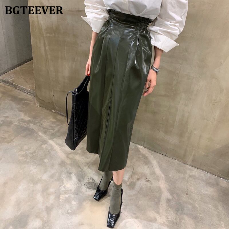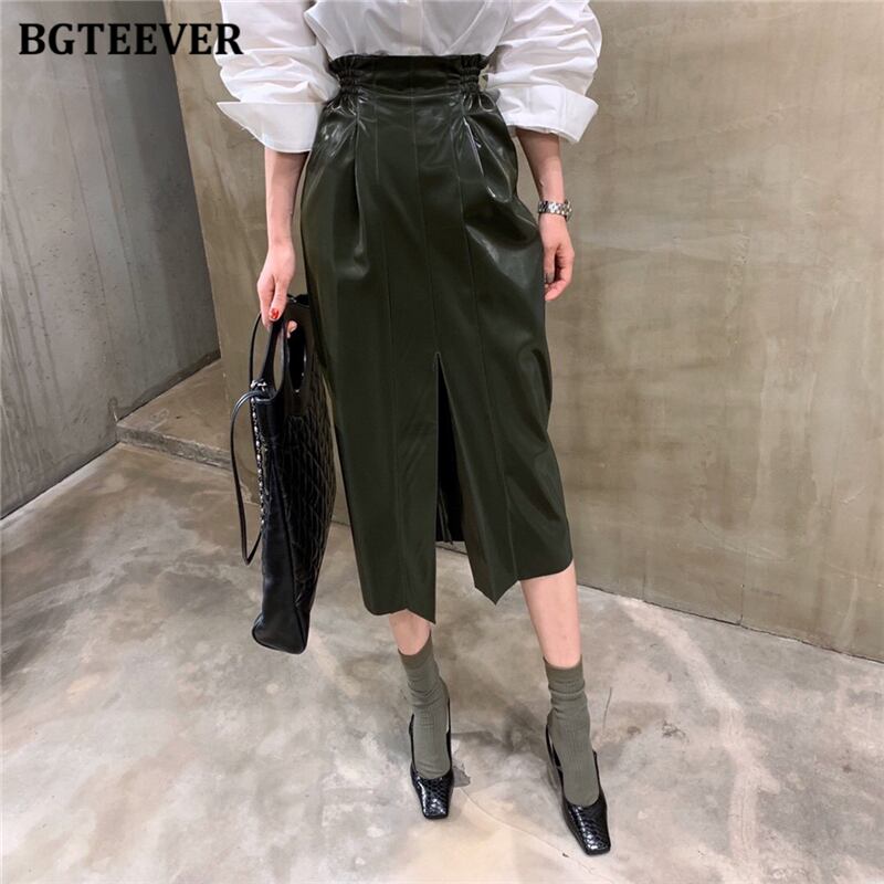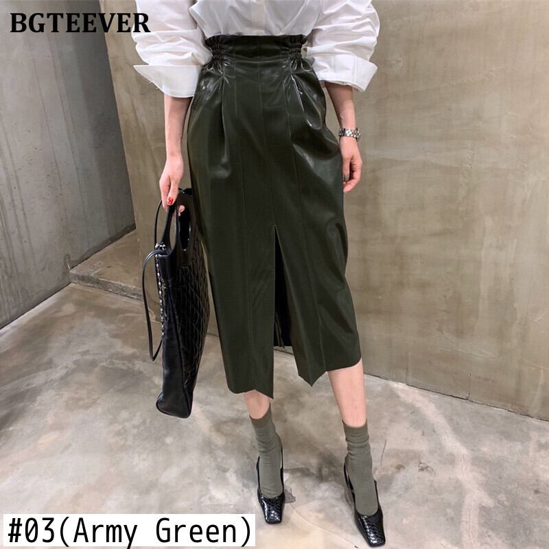 【新作】【送料無料】 BGTEEVERウエストスプリットPUレザーミディスカート2020オータムストリートウェアレディーススキニーパッケージヒップスカート 秋物 12b130311497541