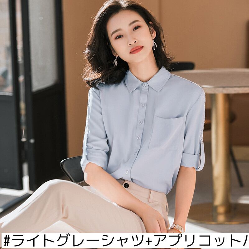 色:白い,ライトグレー,白いシャツ+黒いズボンB87,ライトグレーシャツ+アプリコットパンツB86
