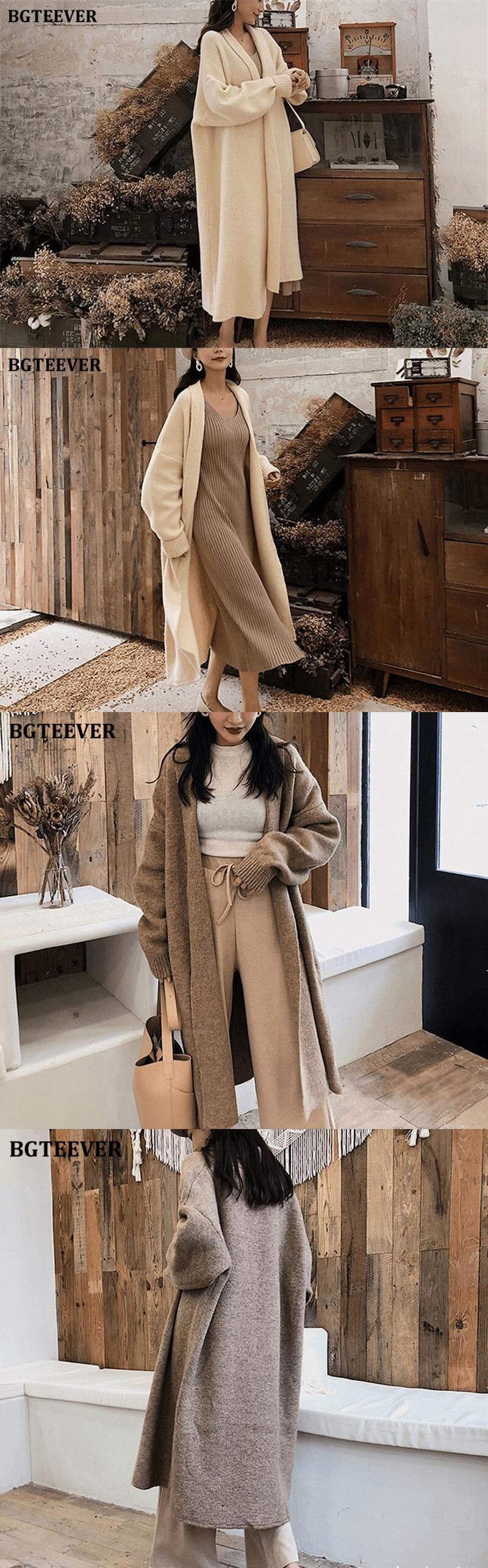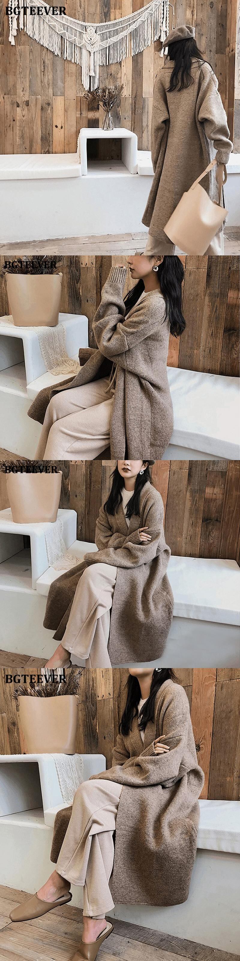 【新作】【送料無料】 BGTEEVERスタイリッシュシックオーバーサイズニットカーディガンレディースVネックソフトウォームルースセーターカーディガン2020年秋冬 オータム 秋物 ウィンター 冬物 12b199194628060