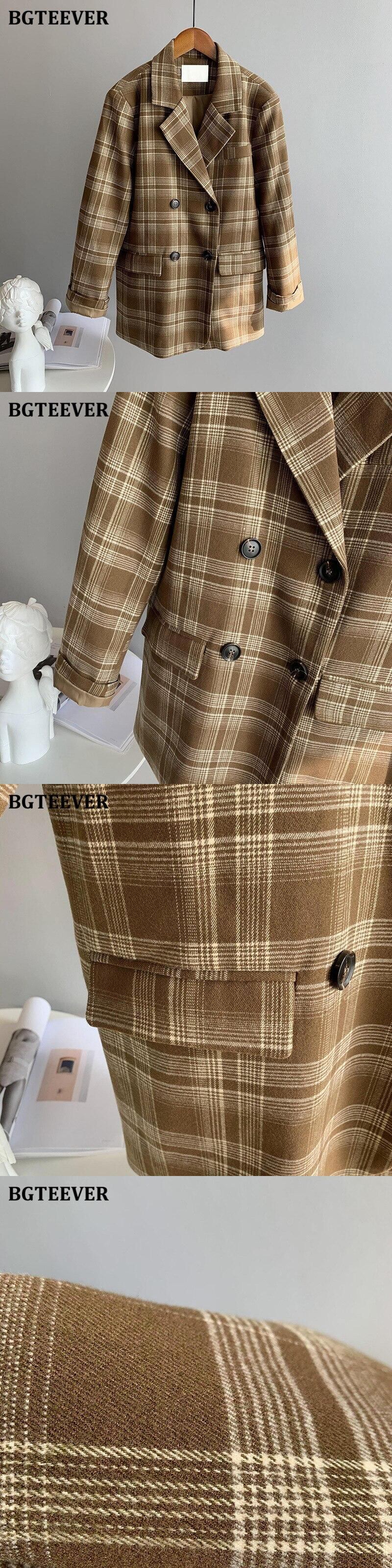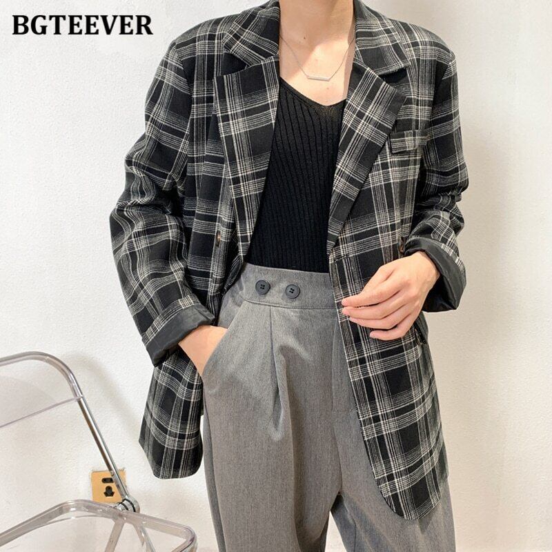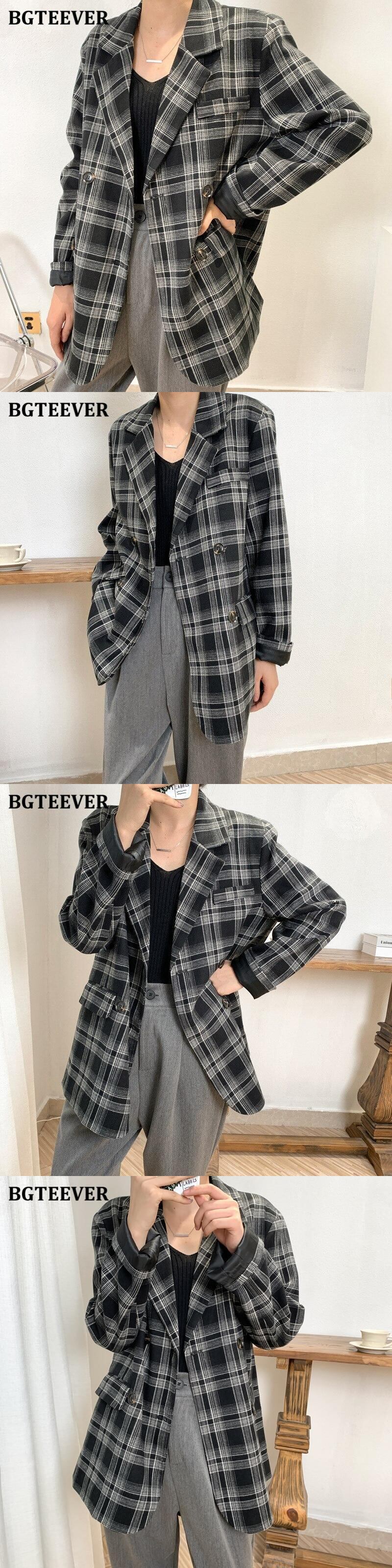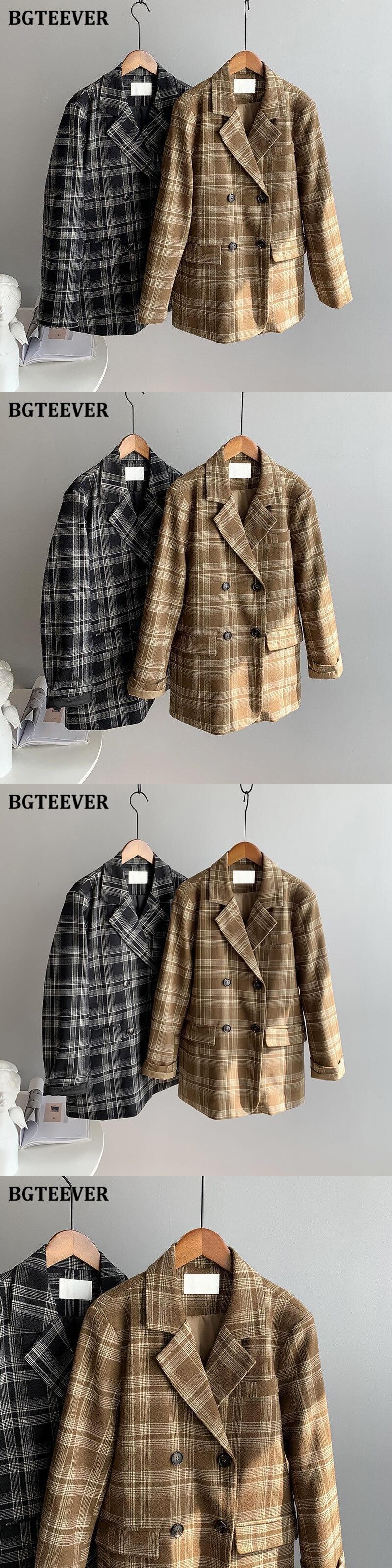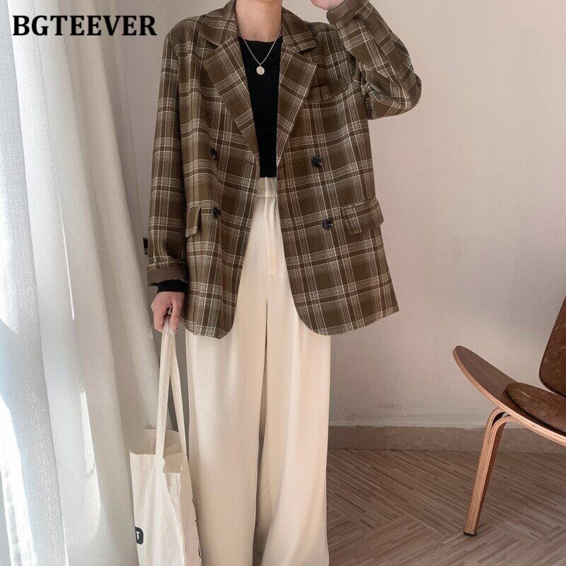 【新作】【送料無料】 BGTEEVERヴィンテージノッチカラーチェック柄ブレザーレディース2020長袖ダブルブレストストリートウェアスーツジャケット秋冬 ロング オータム 秋物 ウィンター 冬物 ビンテージ 12b138501318452