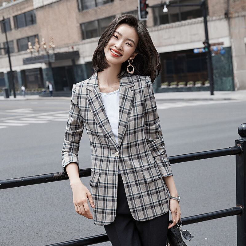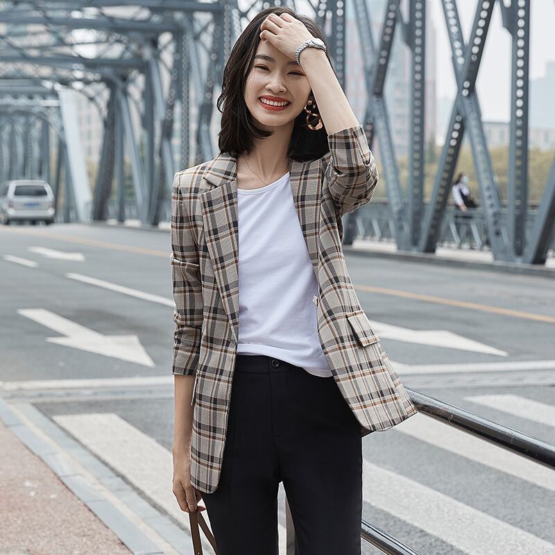 【新作】【送料無料】 本物の秋と冬の新しいルーズチェック柄の小さなスーツジャケットレディース2020カジュアルバージョンプラスサイズのスーツレディースジャケット-アリババ 大きめサイズ オータム 秋物 ウィンター 冬物 12b258218713842