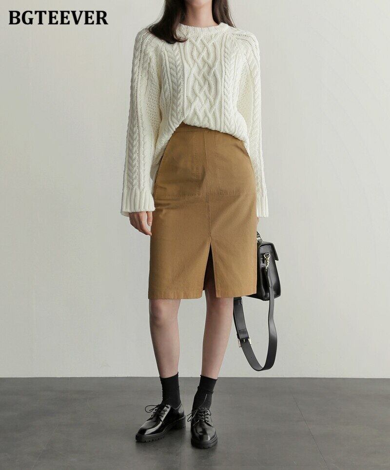 【新作】【送料無料】 BGTEEVERツイストセータージャンパーレディース2020秋冬Oネック長袖サイドスプリットルーズニットプルオーバー ロング オータム 秋物 ウィンター 冬物 12b168932749974