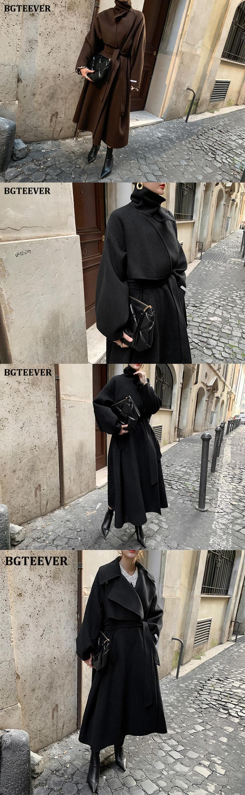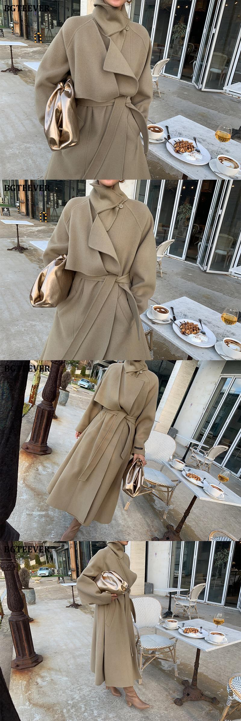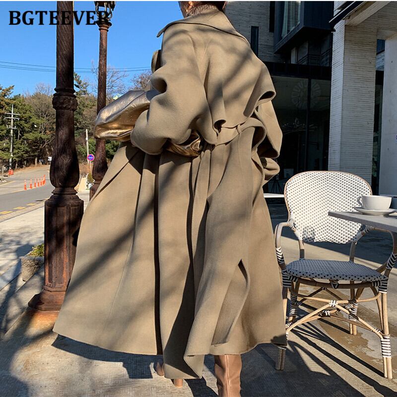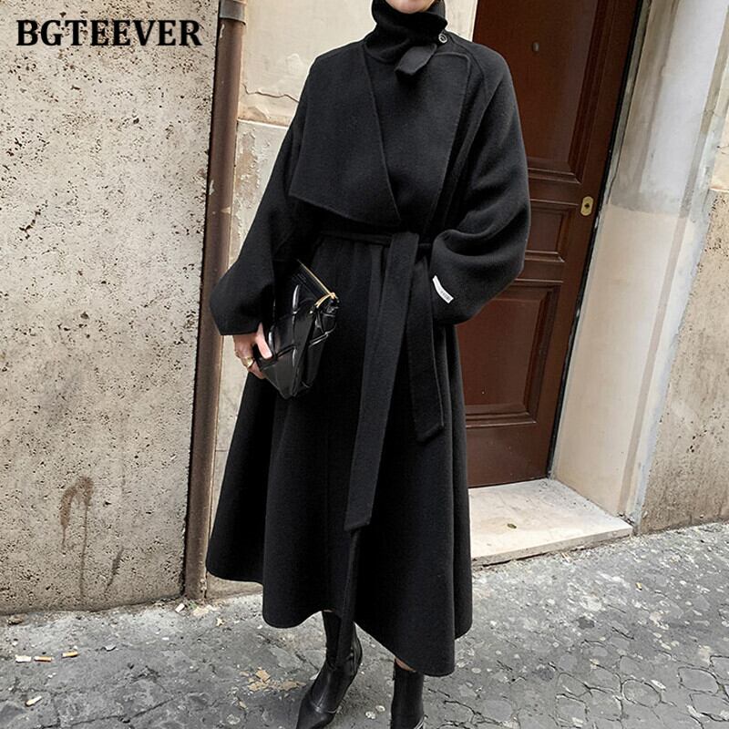 【新作】【送料無料】 BGTEEVER厚手のターンダウンカラーの女性ロングウールコート2020冬の暖かいルーズベルトフルスリーブブレンドオーバーコート ウィンター 冬物 ハーネス 12b147220081357