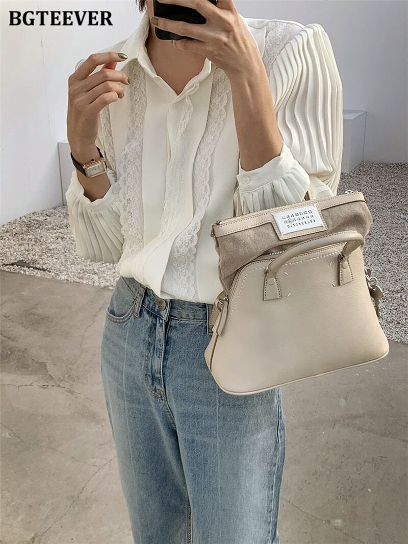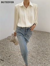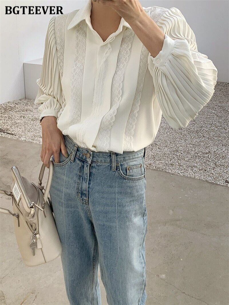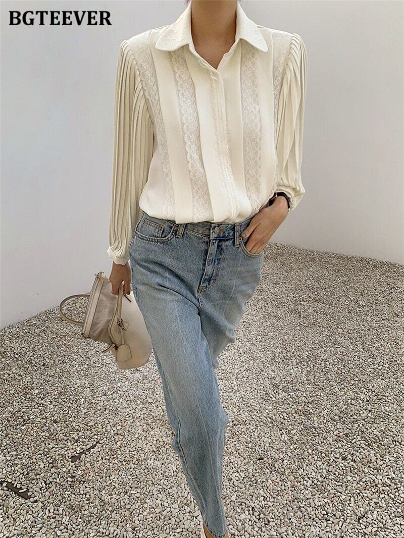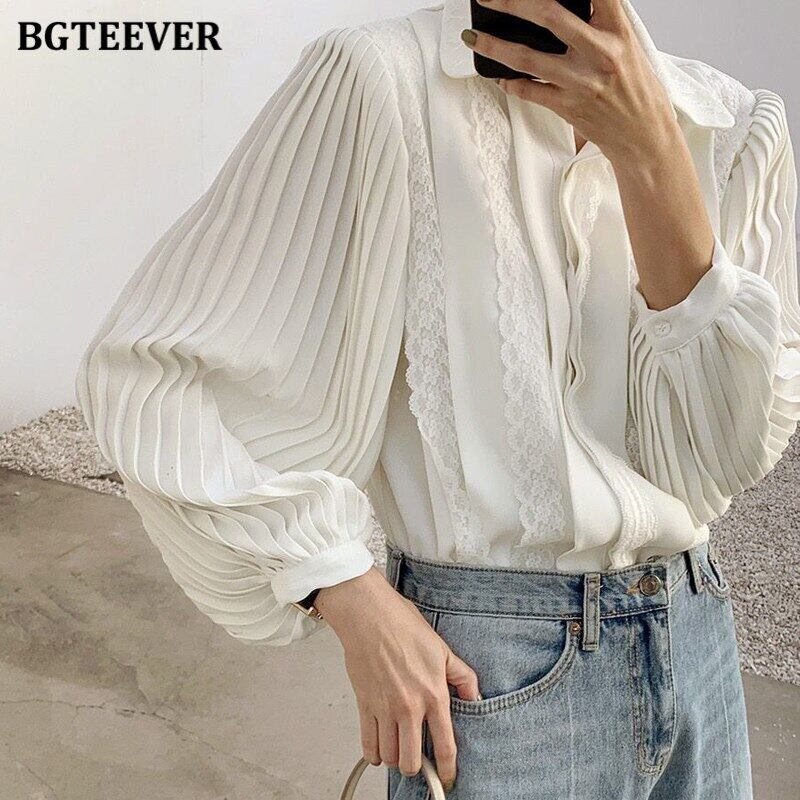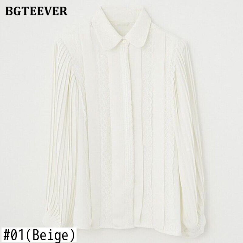 【新作】【送料無料】 BGTEEVERオフィスプリーツスリーブシャツターンダウンカラーレディースレースブラウスシャツ2021春のトップス スプリング 春物 会社 学校 通勤や通学にも 12b132046907522