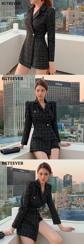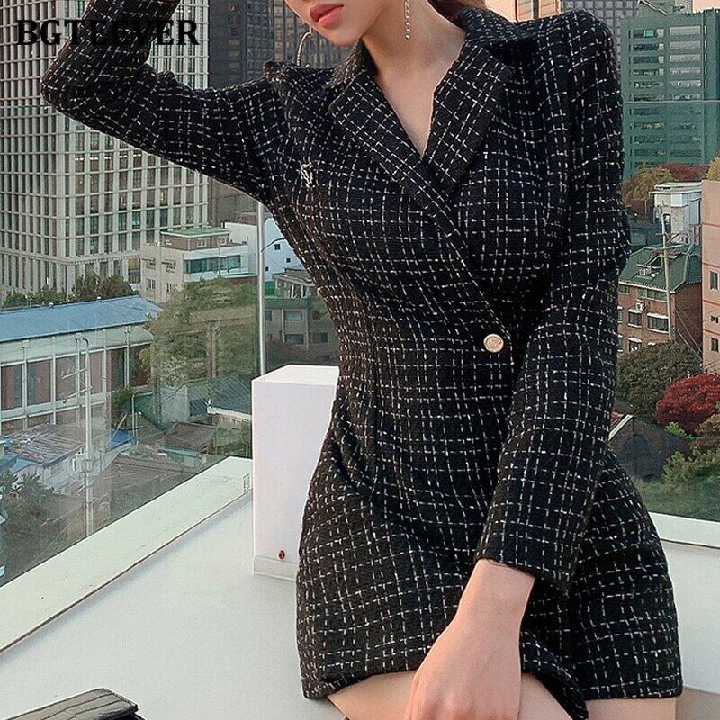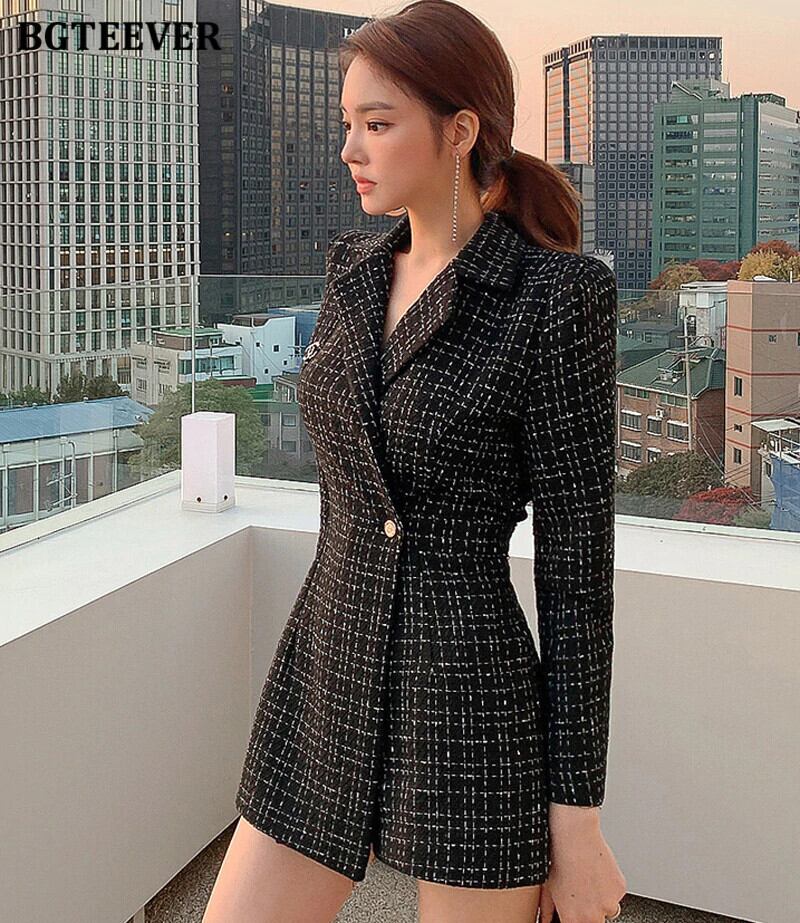 【新作】【送料無料】 BGTEEVERスタイリッシュなノッチカラーレディースチェック柄ブレザーシングルボタン長袖スーツジャケット2020冬スリムアウター ロング ウィンター 冬物 12b140744466097