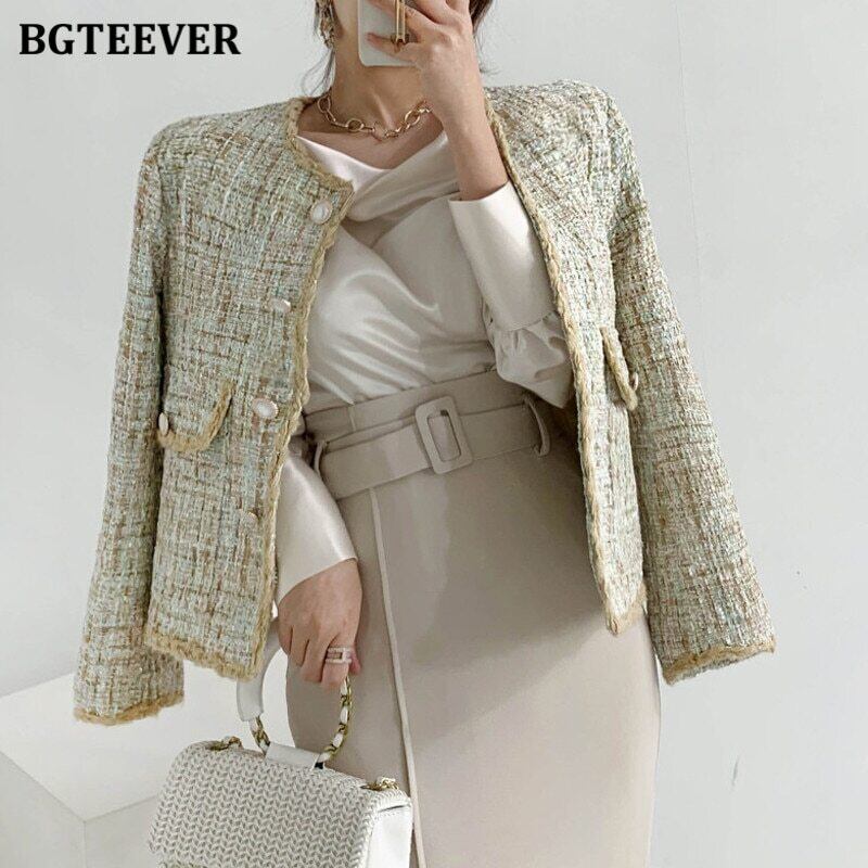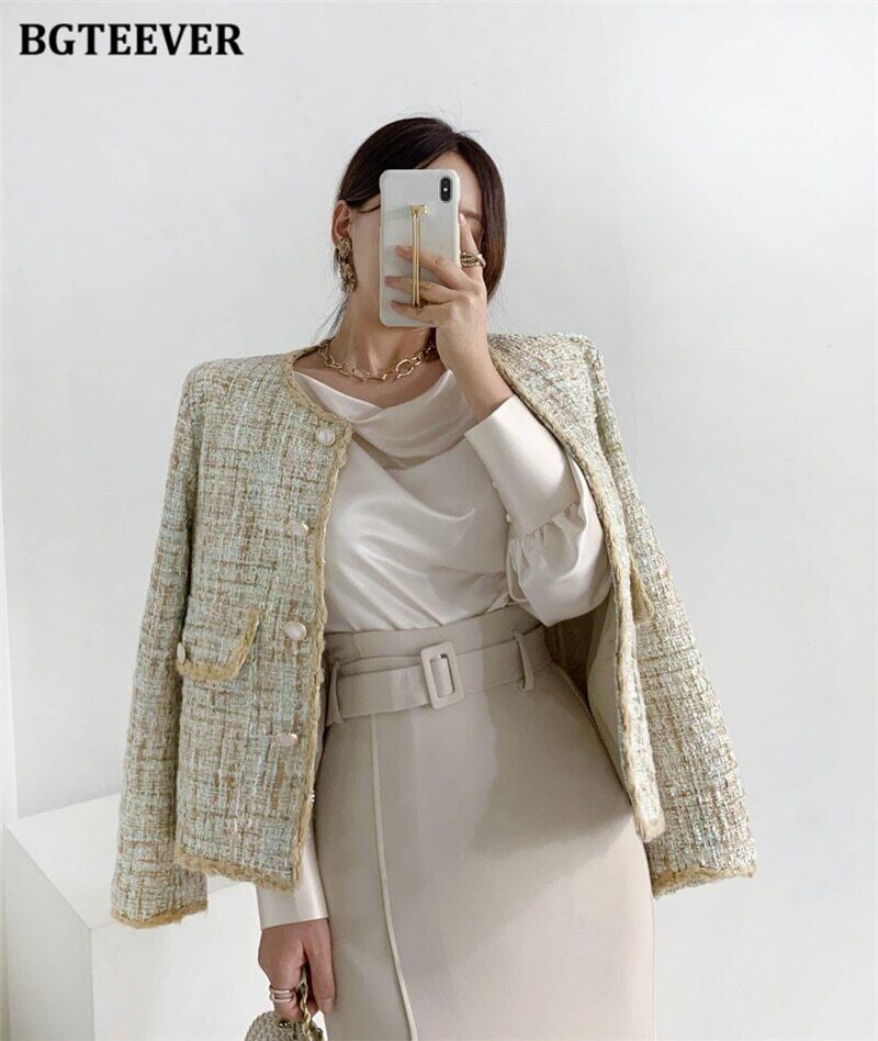 【新作】【送料無料】 BGTEEVEROネックショートブレザー秋フルスリーブシングルブレストルーズスーツジャケット2020アウター オータム 秋物 12b130220347016