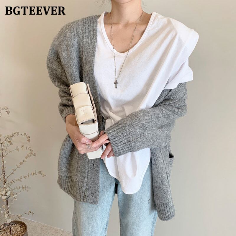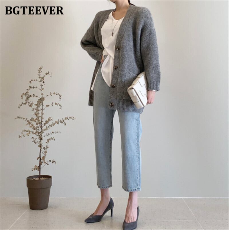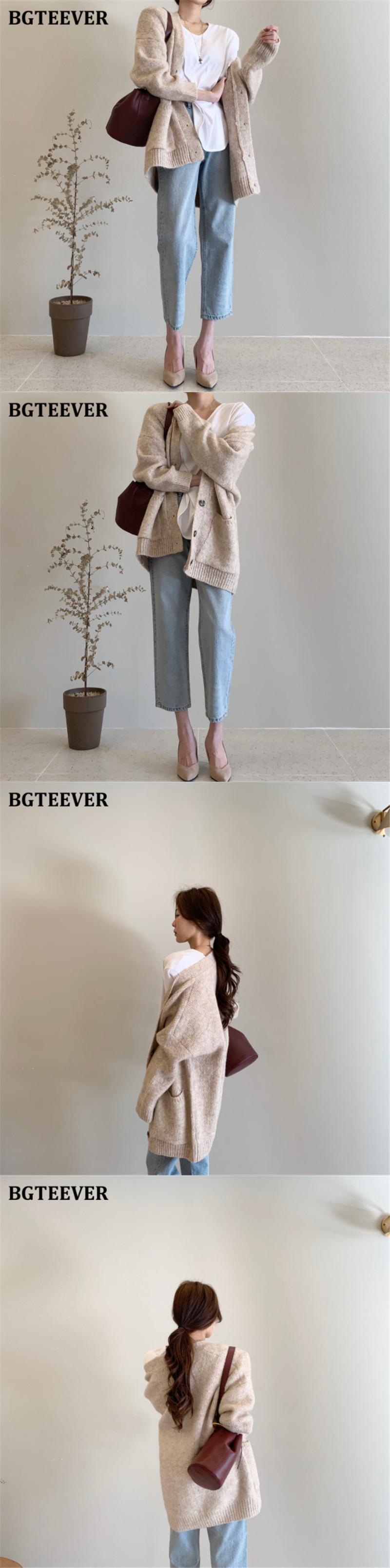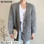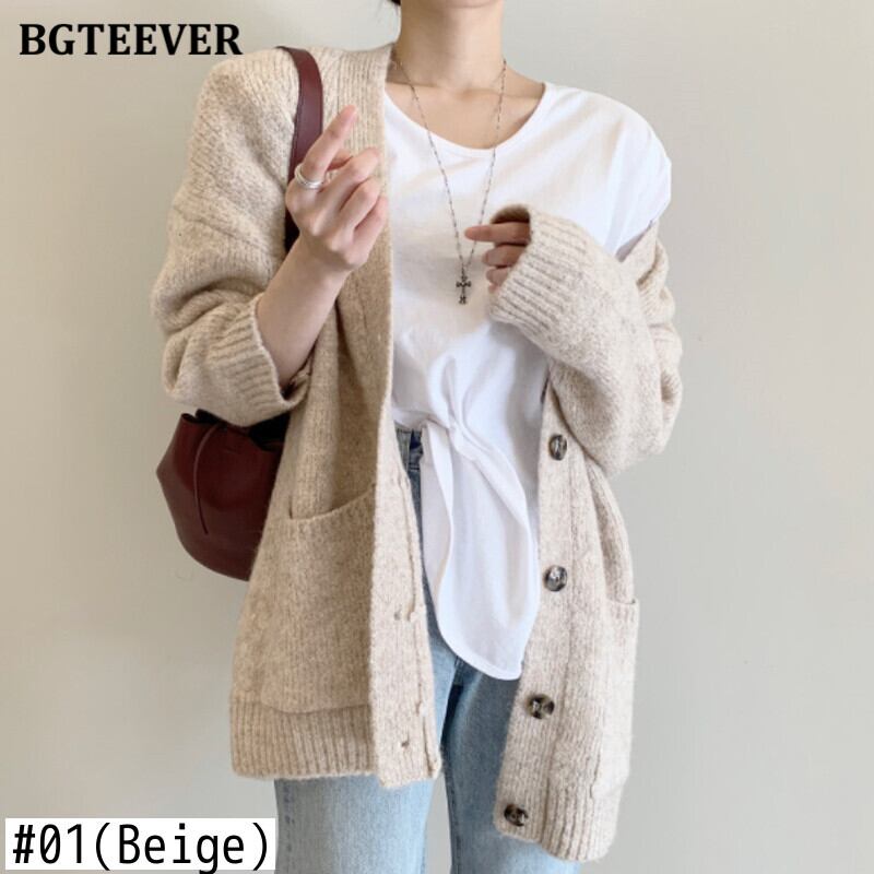 【新作】【送料無料】 BGTEEVER厚手の暖かいVネックの女性オープンステッチセーター2020秋冬シングルブレストポケットニットカーディガン オータム 秋物 ウィンター 冬物 12b123171611440