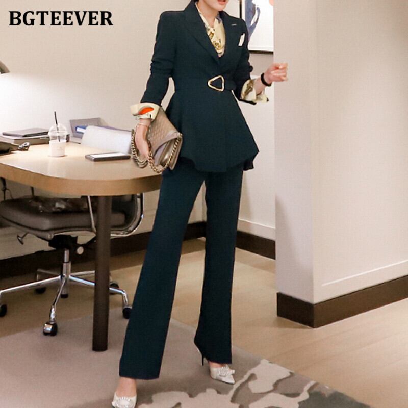 【新作】【送料無料】 BGTEEVEROLスタイルレディースパンツスーツスリムウエストベルトジャケット&スーツパンツ2020秋冬2点セット オータム 秋物 ウィンター 冬物 ハーネス 12b177620579285