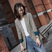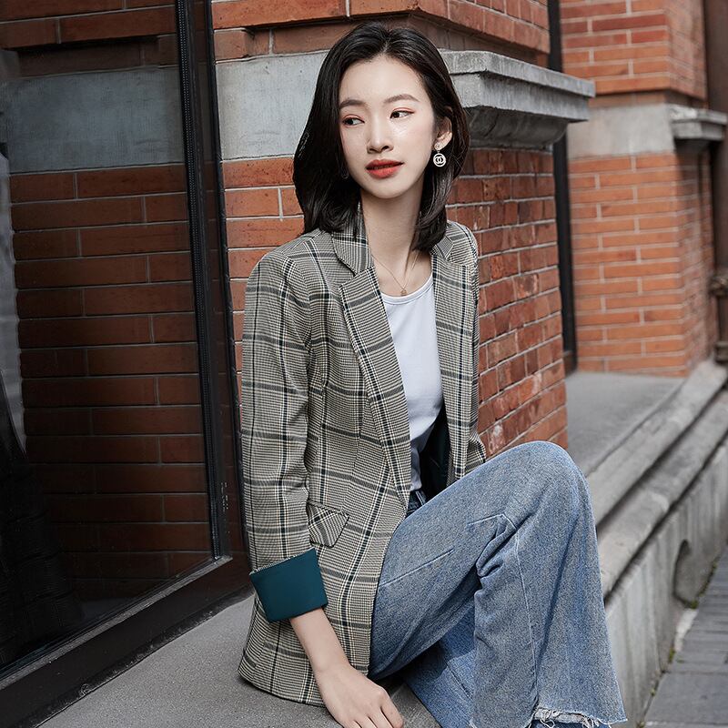 【新作】【送料無料】 本物の秋と冬の新しい格子縞の小さなスーツジャケット女性シンプルバージョン2020カジュアルスーツルースウィミンズトップ-アリババ オータム 秋物 ウィンター 冬物 12b23535759742