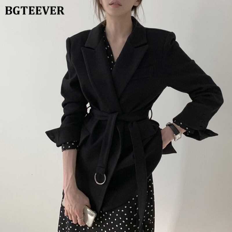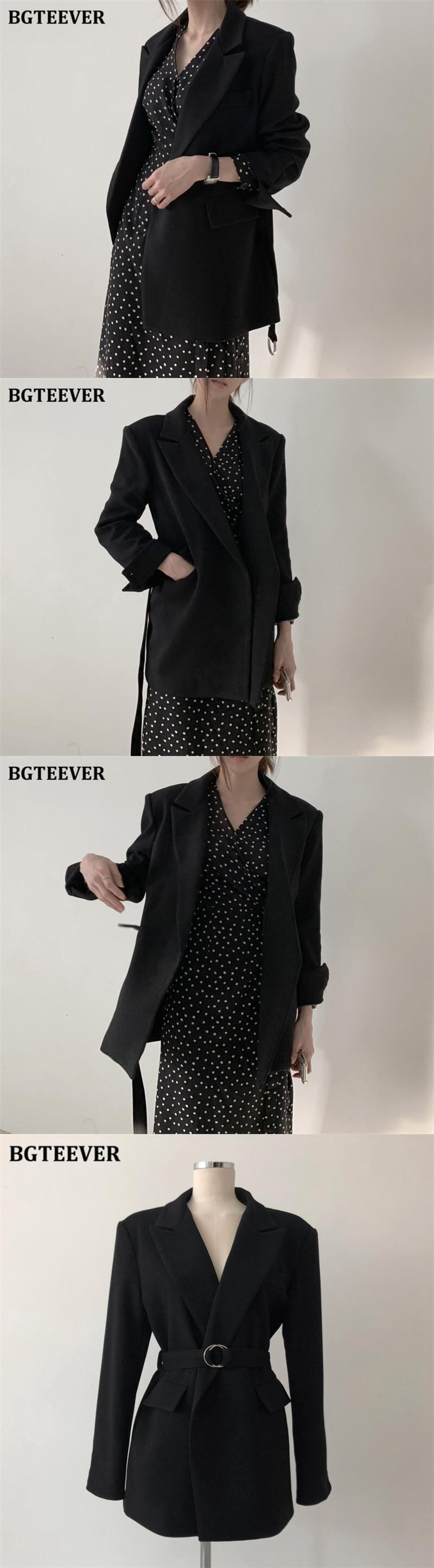 【新作】【送料無料】 BGTEEVERシックなオフィスノッチカラーブレザー2020年秋冬長袖ベルトサッシールースウィミンスーツジャケット ロング オータム 秋物 ウィンター 冬物 ハーネス 会社 学校 通勤や通学にも 12b164535836474