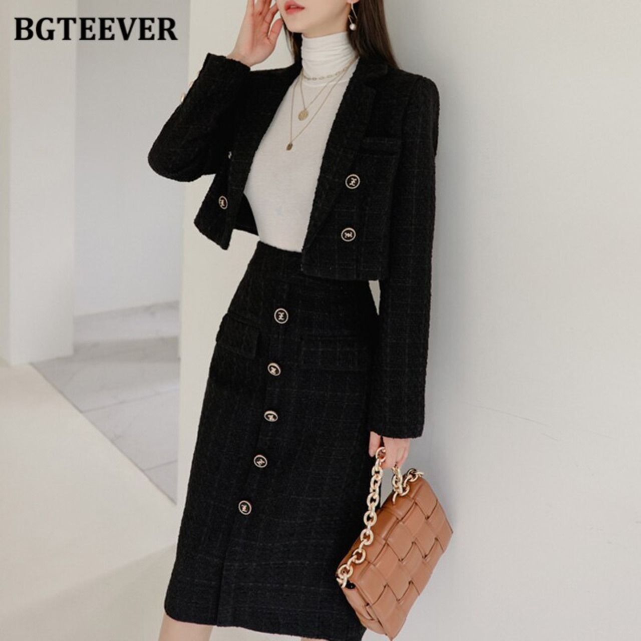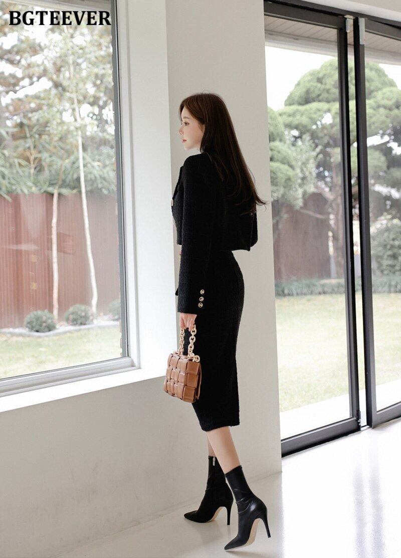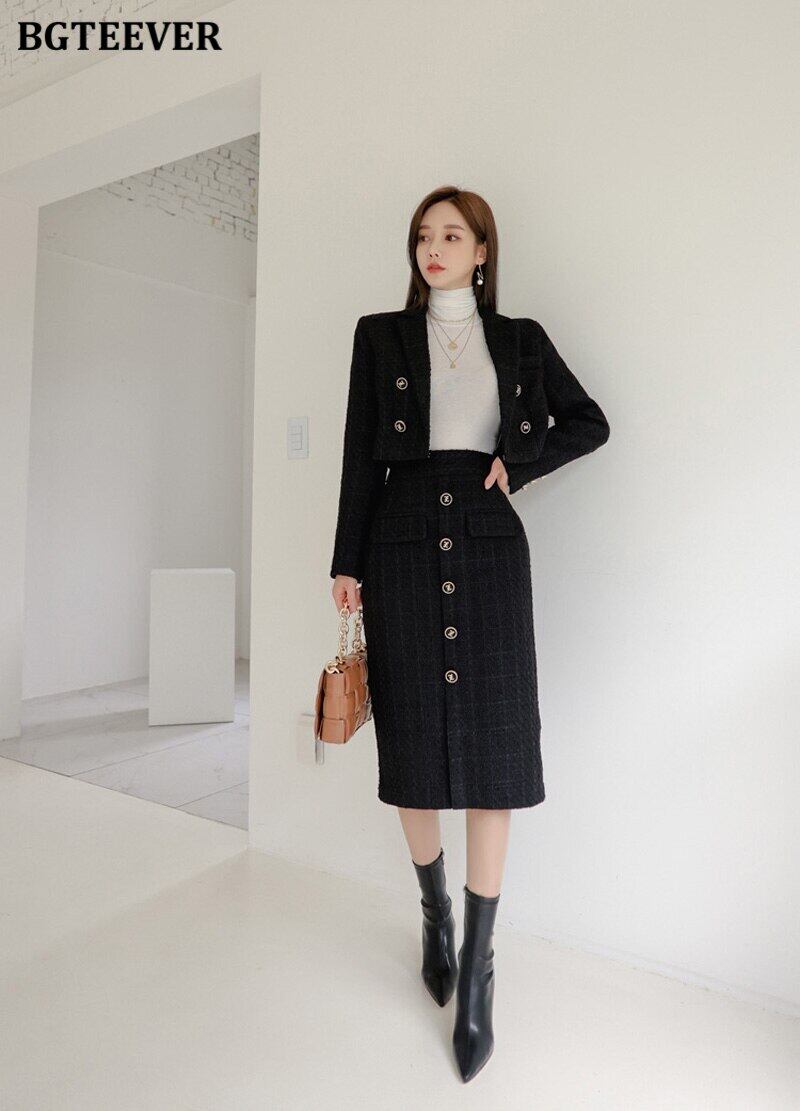 【新作】【送料無料】 BGTEEVERオフィス2ピースブレザーセットノッチカラーウールジャケット&シングルブレストスリムボディコンスカート2020冬 ウィンター 冬物 会社 学校 通勤や通学にも 12b127938273572