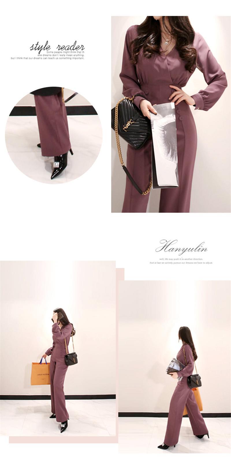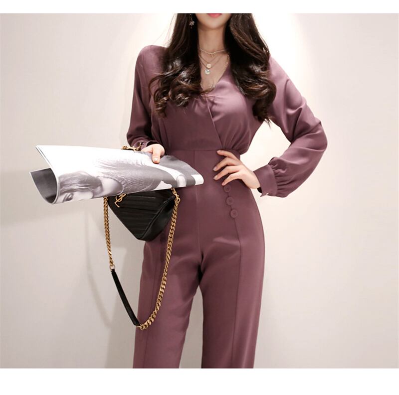 【新作】【送料無料】 Vネックフルスリーブレディースジャンプスーツワークビジネスルーズパンツジャンプスーツスリムウエストロングプレイスーツ2019 12b137999403900