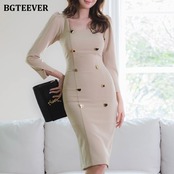 【新作】【送料無料】 BGTEEVERオフィスダブルブレストレディースボディコンドレススクエアカラースプリットスリムパッケージヒップミディドレス2020 スクウェア 会社 学校 通勤や通学にも 12b164392581404