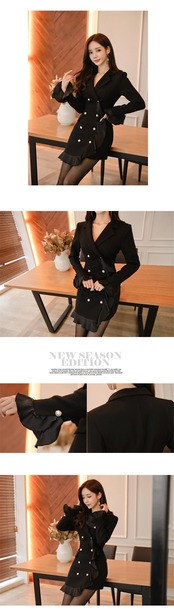 【新作】【送料無料】 ノッチ付きソリッドフリルレディースブレザードレスダブルブレストボディコンブレイザーヴェスティドスオフィスミニドレス ラッフル ソリッドカラー 会社 学校 通勤や通学にも 12b133187067961