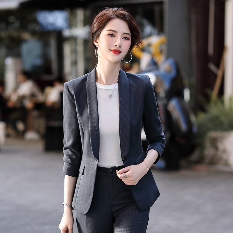 【新作】【送料無料】 ソリッドカラープラスサイズスーツ春と秋の新しいツーピース気質プロスーツ女性トレンドのリアルバージョン-アリババ 大きめサイズ スプリング 春物 オータム 秋物 12b233022629129