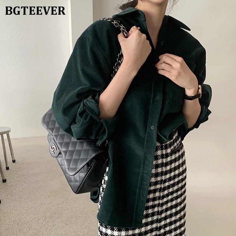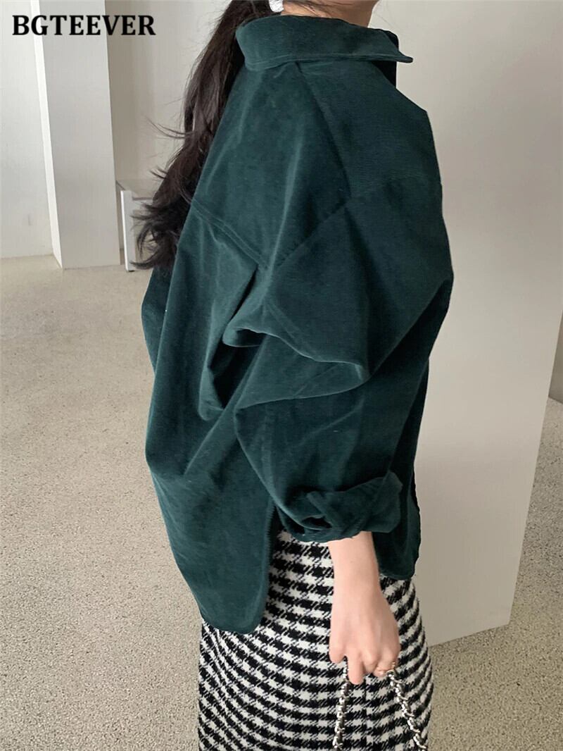 【新作】【送料無料】 BGTEEVERヴィンテージ厚手のターンダウンカラーコーデュロイシャツ長袖ポケットブラウストップス女性ルーズ ロング ビンテージ 12b174241577342
