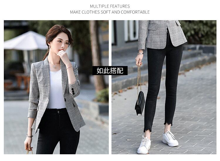 【新作】【送料無料】 リアルの無地チェック柄ルーズラージサイズスモールスーツジャケットレディースバージョン2020春秋新作スーツジャケット-アリババ 大きめサイズ スプリング 春物 オータム 秋物 ソリッドカラー 12b270095451610