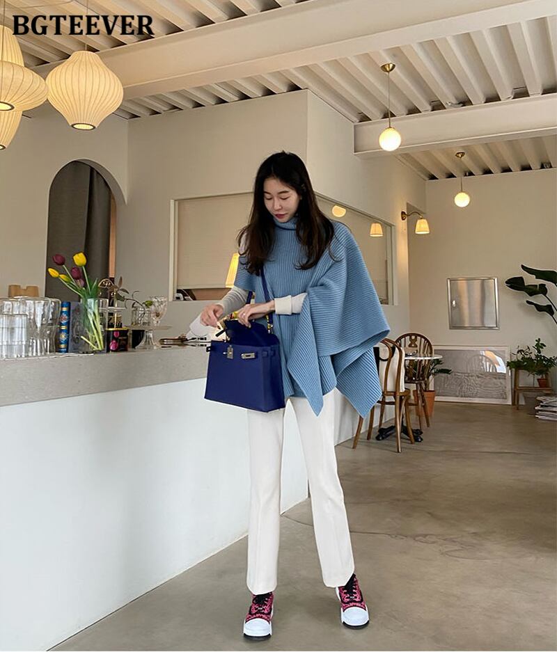 【新作】【送料無料】 BGTEEVERスタイリッシュシックタートルネックセータージャンパーレディース秋冬不規則なルーズニットマント2020ニットウェア オータム 秋物 ウィンター 冬物 12b120605793104