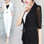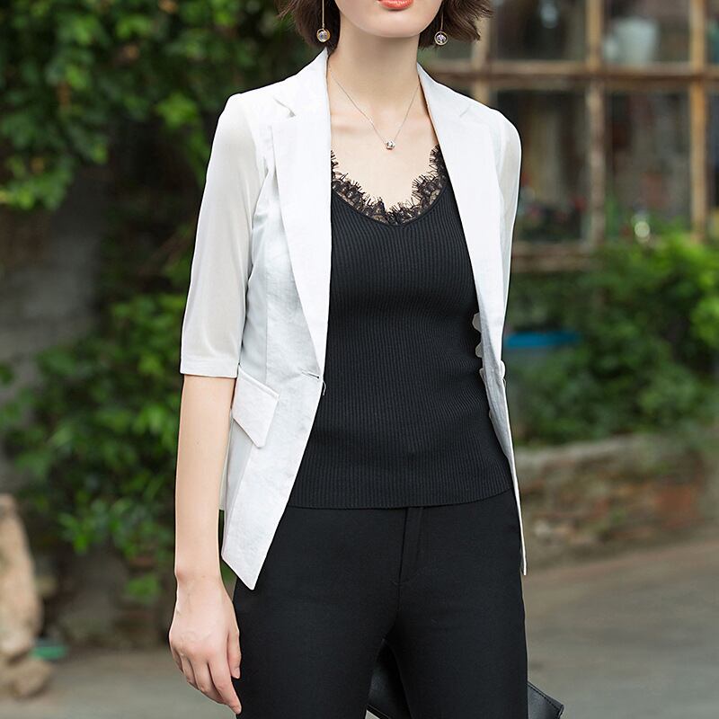 【新作】【送料無料】 2020年春秋商品レディーススモールジャケットトップススーツネットヤーンハーフスリーブeseオールマッチトレンドスーツコットンリネンレディース-アリババ 半袖 スプリング 春物 オータム 秋物 12b374885983826