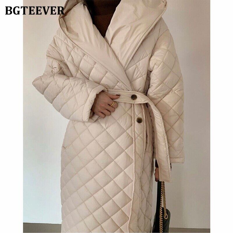 【新作】【送料無料】 BGTEEVERヴィンテージアーガイルベルトロングパーカーレディースコットンパッド入り厚手のウィンタージャケットフード付き特大ウォームオーバーコート 冬物 ハーネス ビンテージ 12b184570449108