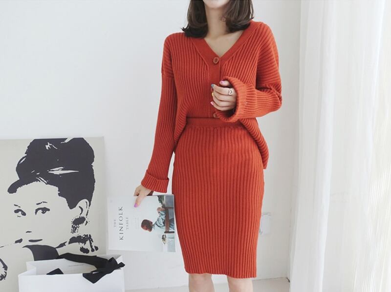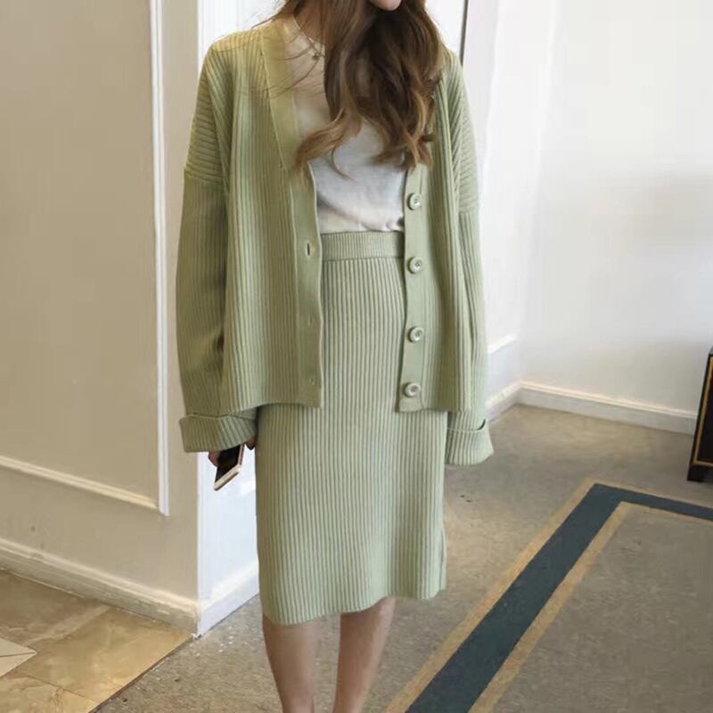 【新作】【送料無料】 2020秋冬ソフトウォームニット2点セット女性フルスリーブ厚手カーディガン&ミディスカートセータースーツセット オータム 秋物 ウィンター 冬物 12b181736942159