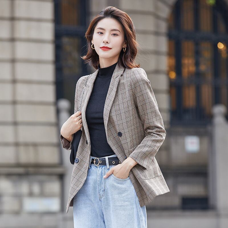 【新作】【送料無料】 本物の秋と冬の新しいマルチカラーファッションチェック柄スーツレディースジャケットカジュアル2020スモールスーツプラスサイズジャケット婦人服-アリババ 大きめサイズ オータム 秋物 ウィンター 冬物 12b293375768368