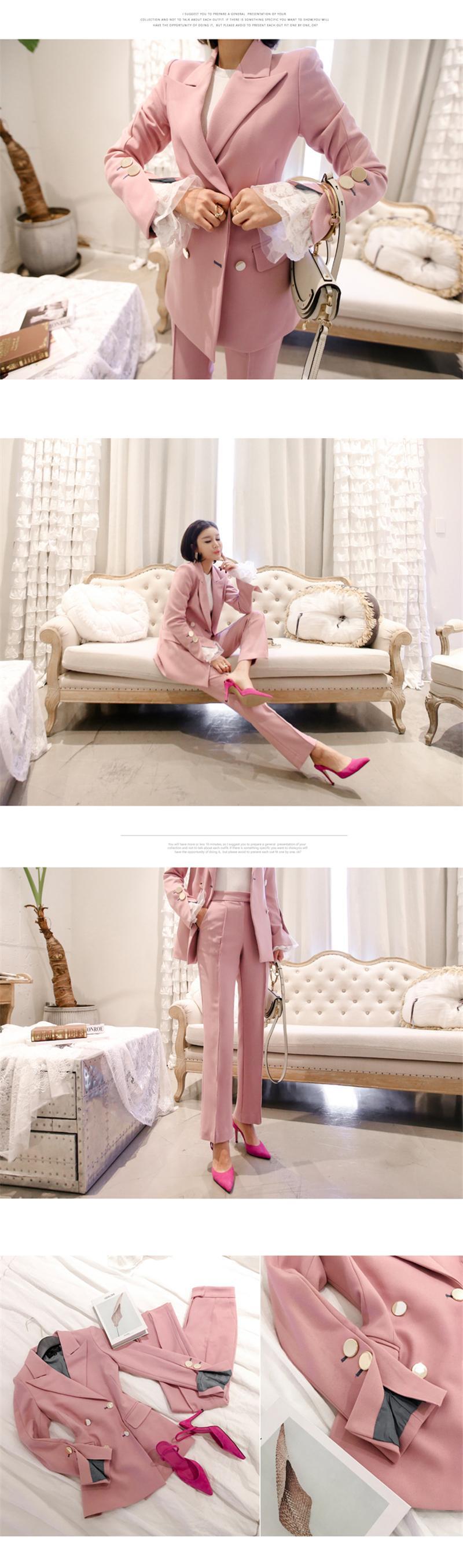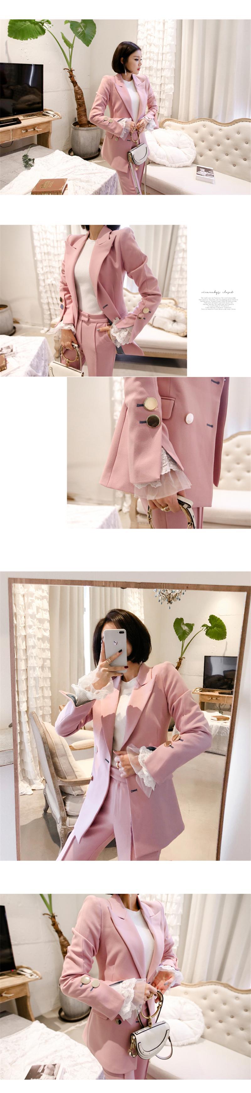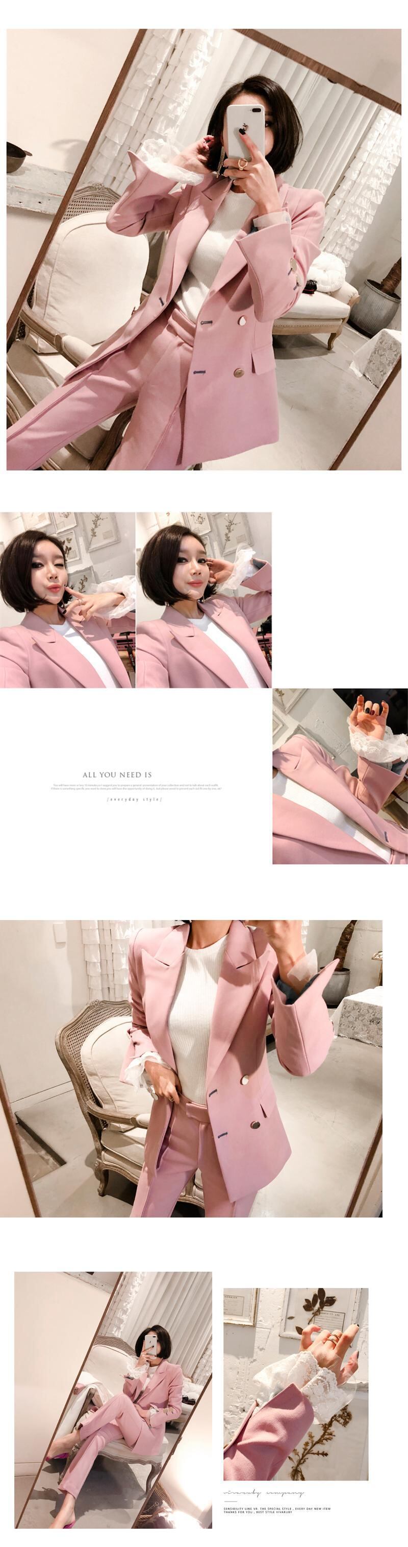 【新作】【送料無料】 グリーンダブルブレストレディースパンツスーツヒットカラーノッチブレザージャケット&ウエストパンツ2019オフィスウェアレディーススーツ 会社 学校 通勤や通学にも 12b193254730884