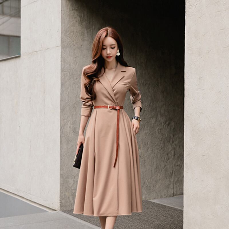 【新作】【送料無料】 BGTEEVERVネックレディースAラインドレスフルスリーブロングドレスサッシプリーツPatryVestidos femme2020春夏 スプリング 春物 サマー 夏物 フェミニン 12b171709440609
