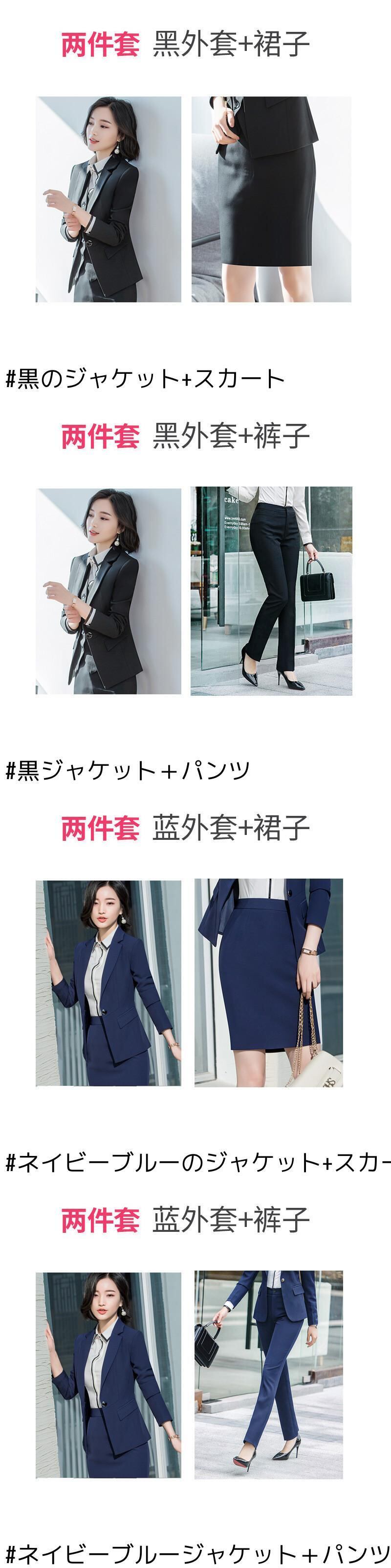 色:黒のジャケット+スカート,黒ジャケット+パンツ,ネイビーブルーのジャケット+スカート,ネイビーブルージャケット+パンツ,黒のジャケット+白のシャツ+スカート,黒のジャケット+白のシャツ+パンツ,ネイビーブルーのジャケット+白いシャツ+スカート,ネイビーブルーのジャケット+白いシャツ+パンツ,黒のジャケット+白のシャツ+スカート+パンツ,ネイビーブルーのジャケット+白いシャツ+スカート+パンツ,黒い5ピーススーツ,ネイビーブルー5点セット