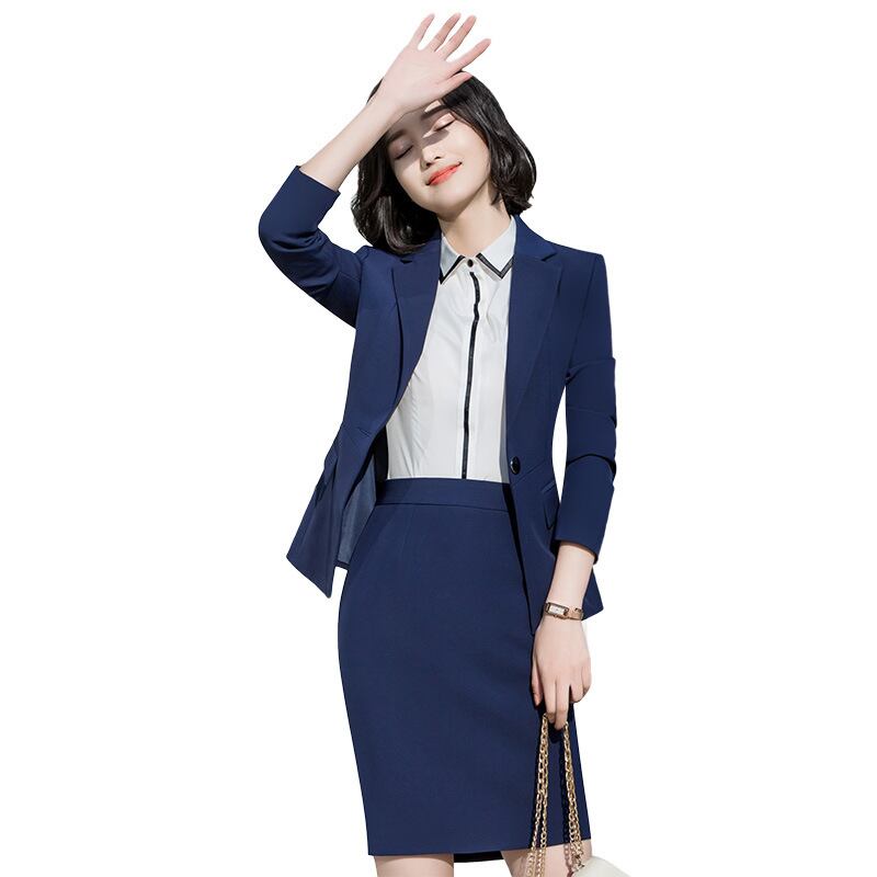 【新作】【送料無料】 プロのウェアスーツ女性2021年新しい長袖ファッションレディーススーツスカートインタビューマル作業服ツーピーススーツ ロング 12b356880373590