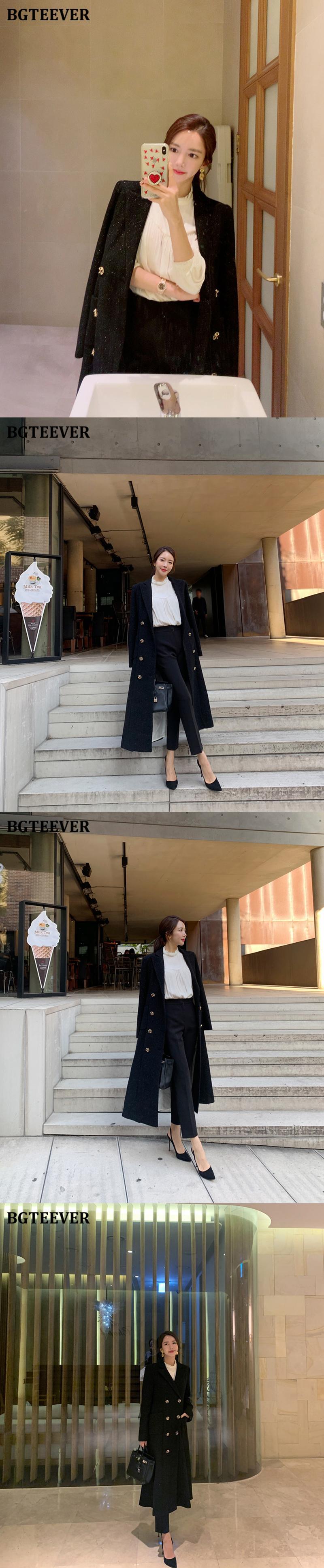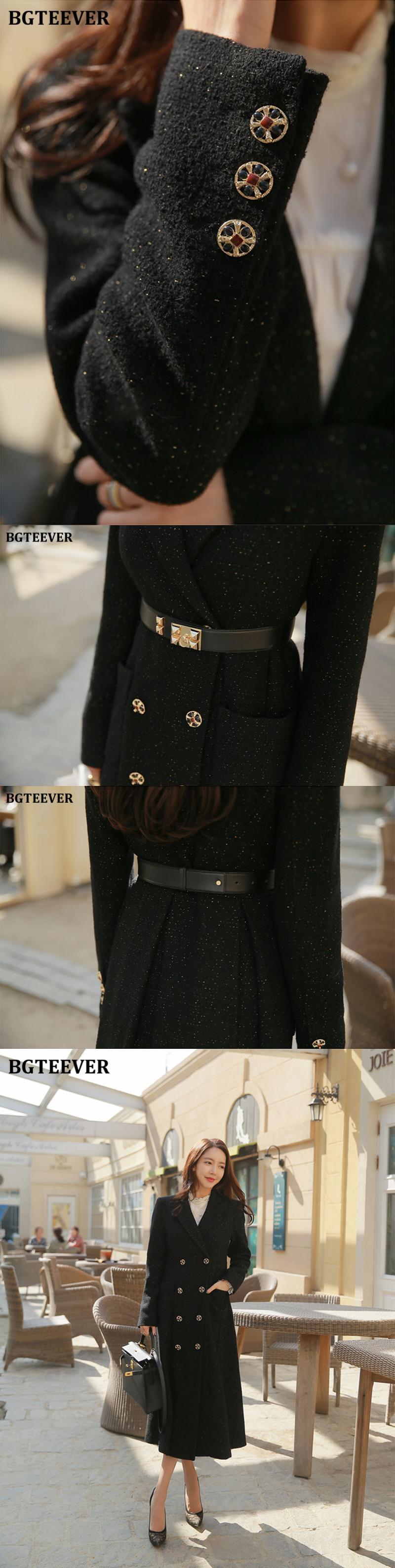 【新作】【送料無料】 BGTEEVERオフィスダブルブレストロングコート2020Winter Thick Warm Slim Waist Woolen Coats Belted Women Overcoat ウィンター 冬物 ハーネス ベルト スリム 会社 学校 通勤や通学にも 12b11249305612