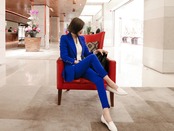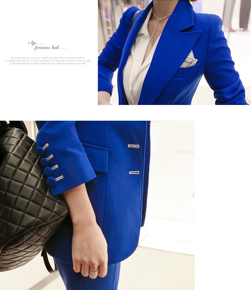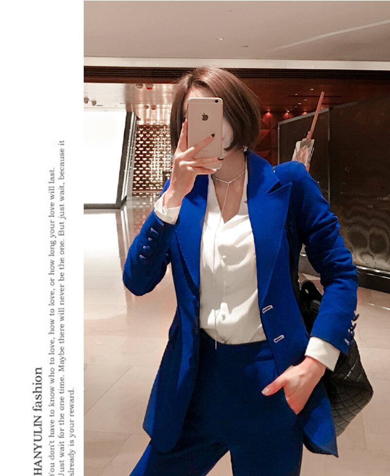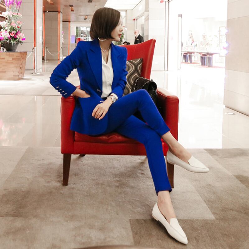 【新作】【送料無料】 ブルーレディースパンツスーツシングルブレストジャケットブレザー&ペンシルパンツウェアトゥビジネス2ピースセット2018秋 オータム 秋物 12b129061429499