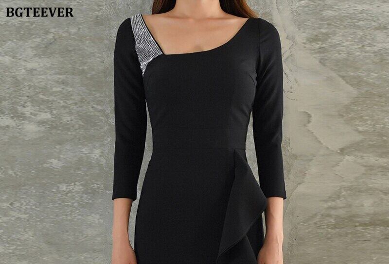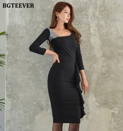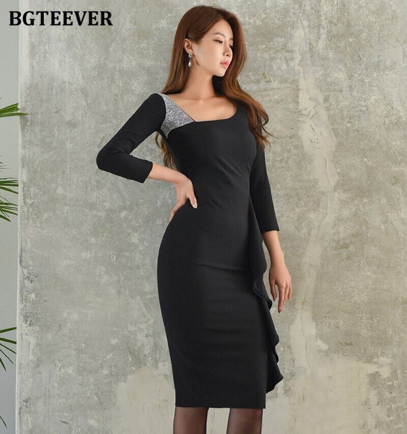 【新作】【送料無料】 BGTEEVERオータムオフィスウェアスラッシュネックパッチワークレディースパッケージヒップドレスフリルスリムウエストスキニードレス2020 ラッフル 秋物 会社 学校 通勤や通学にも 12b132111658094
