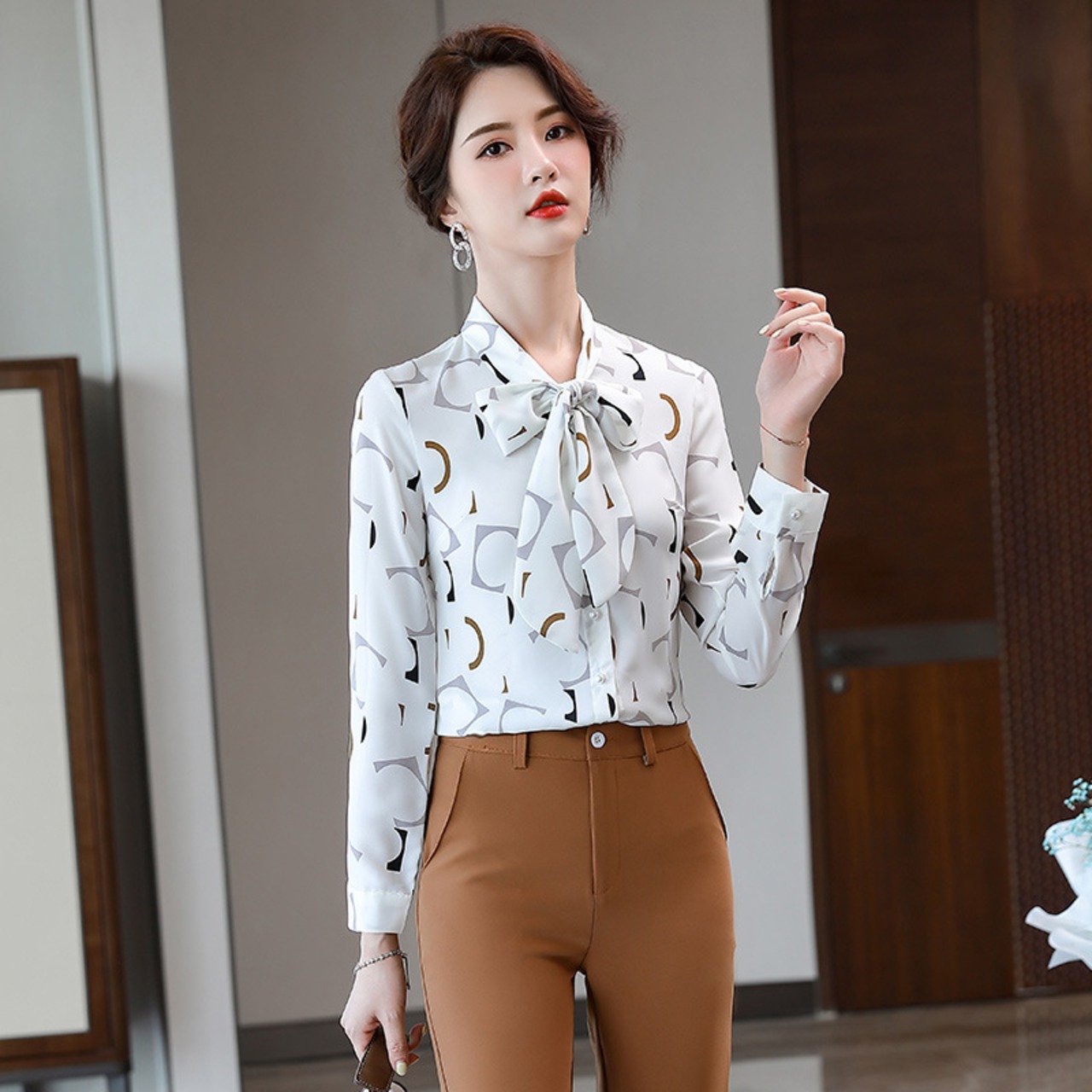 【新作】【送料無料】 プリントファッションシャツレディース2020春秋新作長袖シャツデザインのニッチなエクステリアセンスのリアルバージョン ロング スプリング 春物 オータム 秋物 12b225591966743