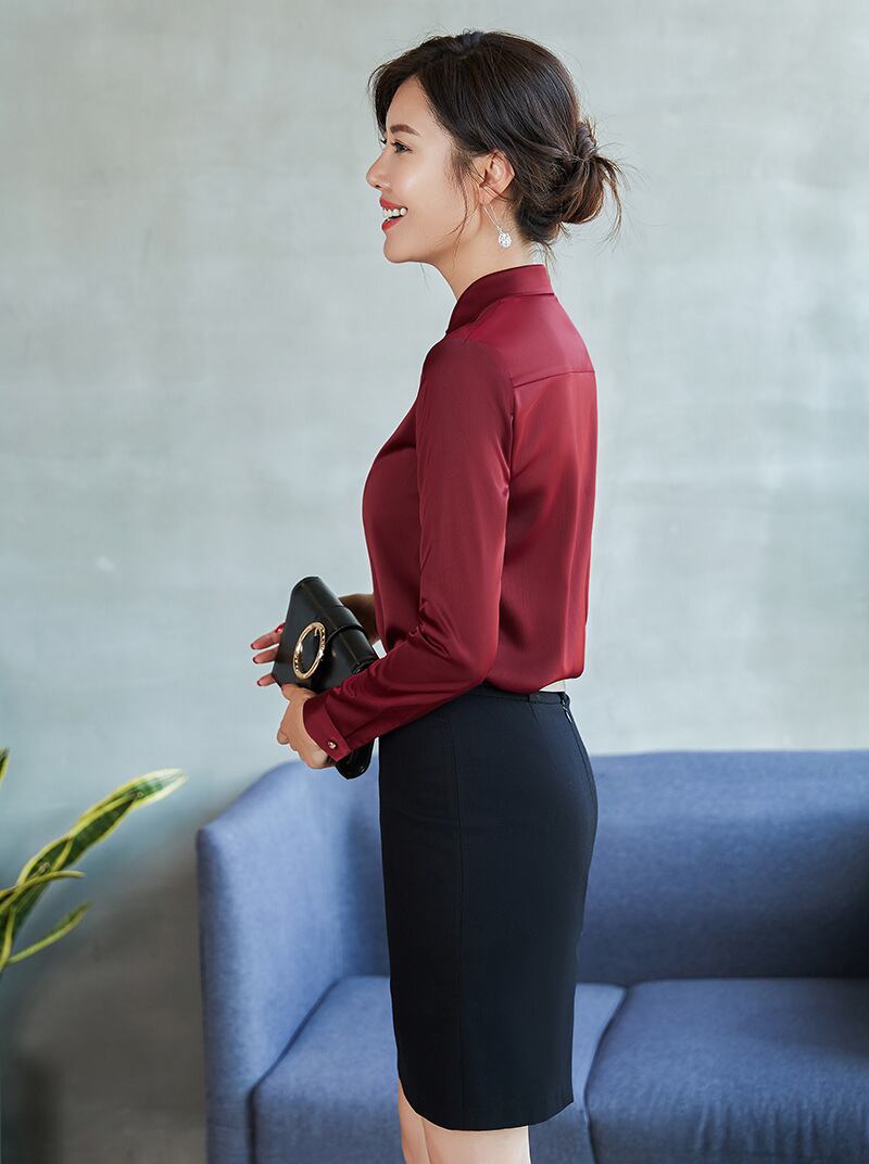 【新作】【送料無料】 新しい秋と冬の女性の長袖パリジャンシルクワインレッドプロのシャツの直接バッチは、8月にすべて一致する新製品-アリババ ロング オータム 秋物 ウィンター 冬物 12b353220866415