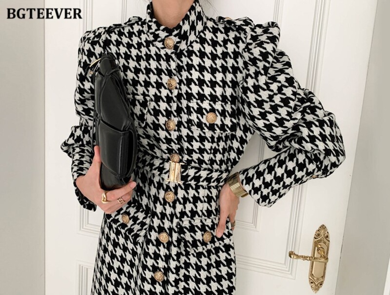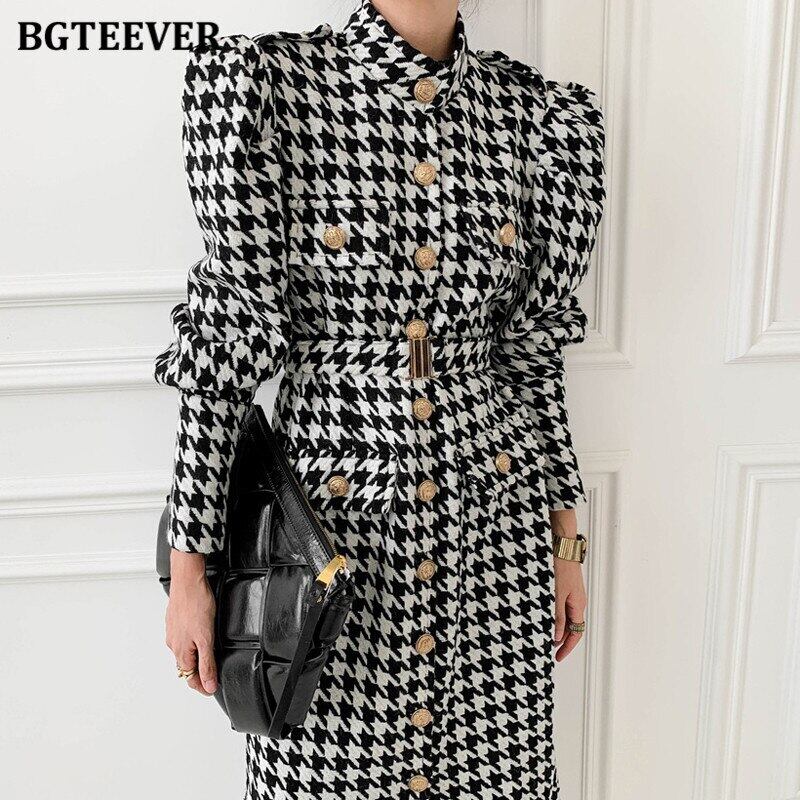 【新作】【送料無料】 BGTEEVER Vintage Plaid Slim Blend Coat Women Single-breasted Warm Midi Coat Slashes Belted Winter Outwear 2020 ウィンター 冬物 ハーネス ベルト スリム ビンテージ 12b168833205976