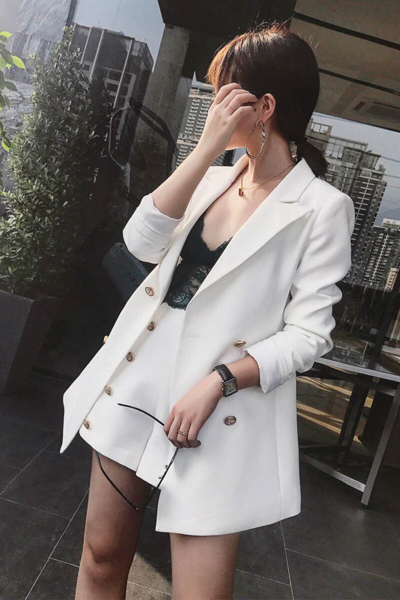【新作】【送料無料】 2018 Office Lady Vintage Short Suit Set 2 Piece Set Solid Women Tracksuit Jacket Blazer + Hot Mini Shorts ショート ミニ ショーツ ブルマー ソリッドカラー ビンテージ 会社 学校 通勤や通学にも 12b152540559697